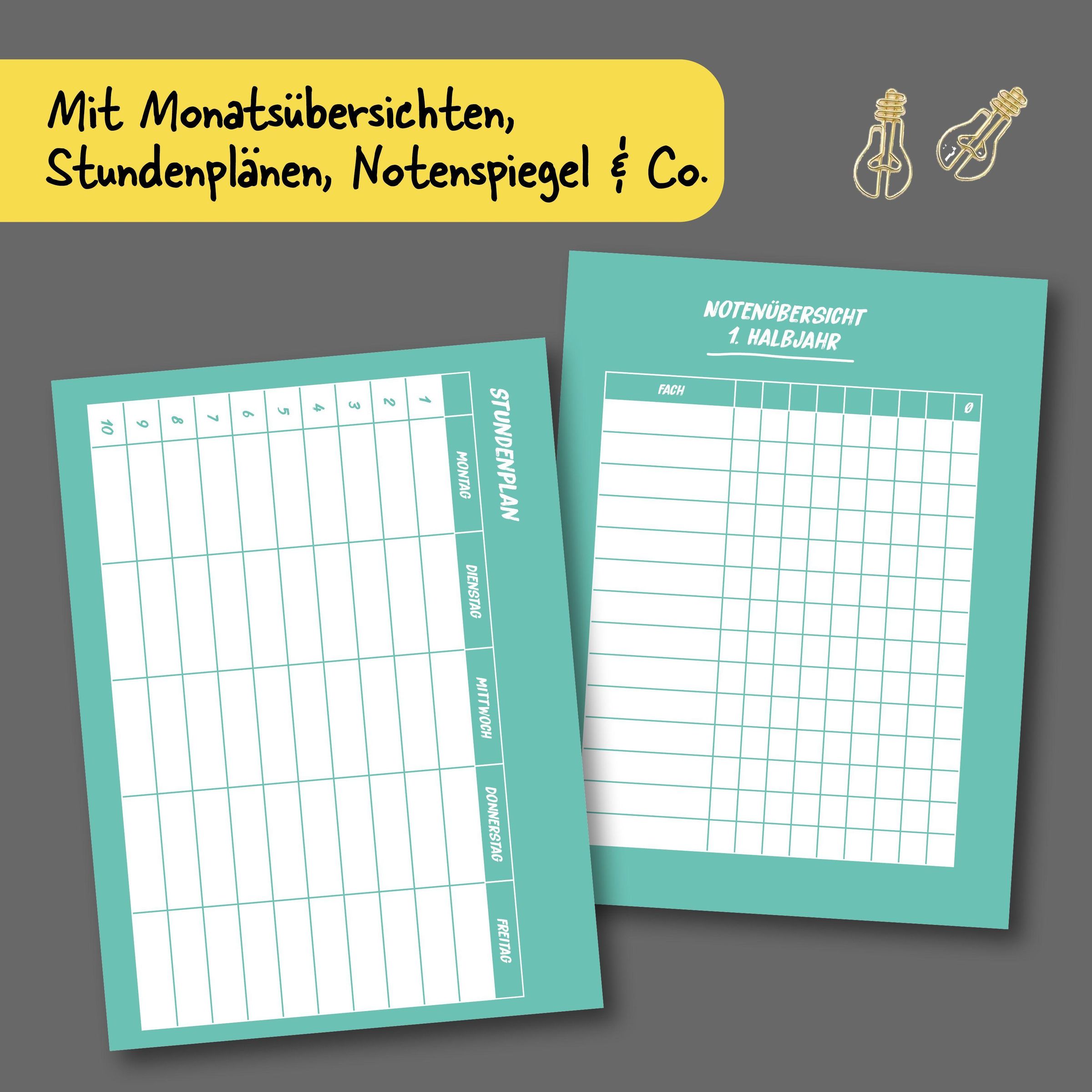 - stabil gebundener, handlicher und leichter Planer für den Schulalltag