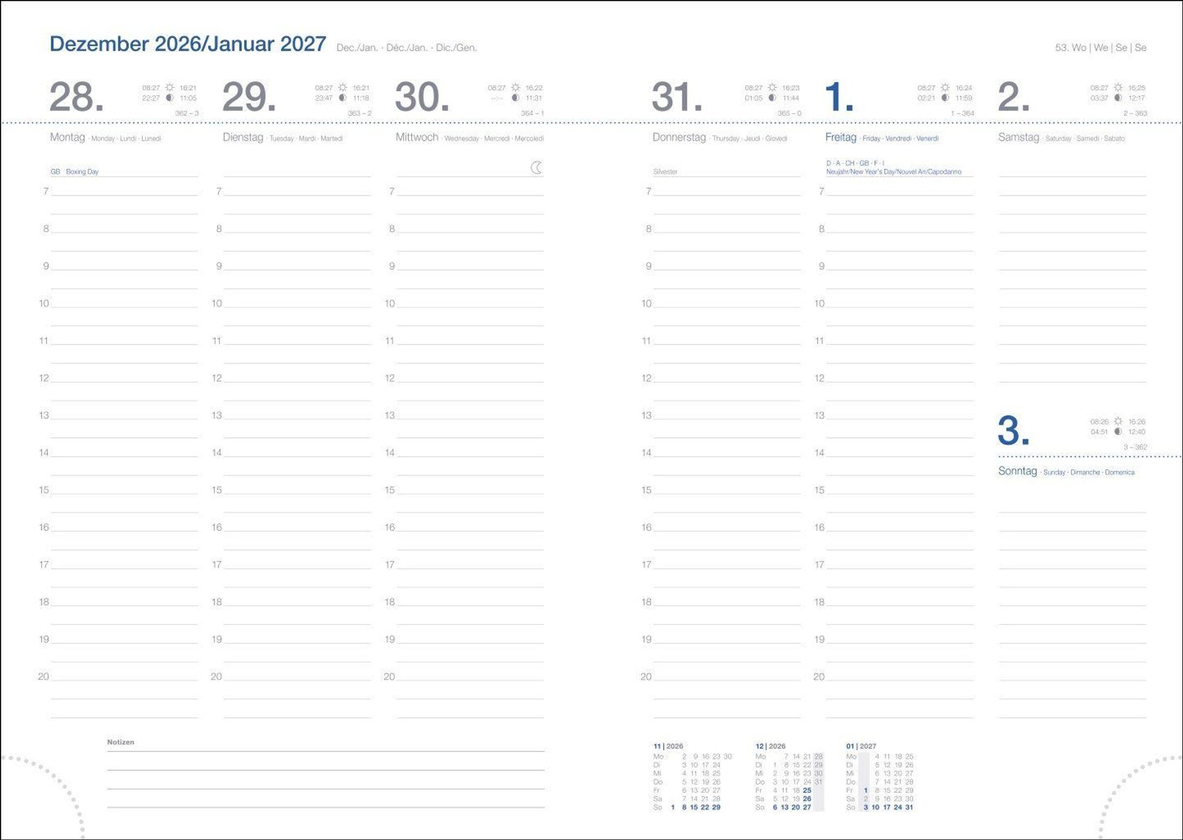 • Wochenkalender. Goldener Terminkalender in Aluoptik. Buch-Kalender mit Eckperforation und Spiralbindung. Taschenkalender zum Planen von Terminen.
