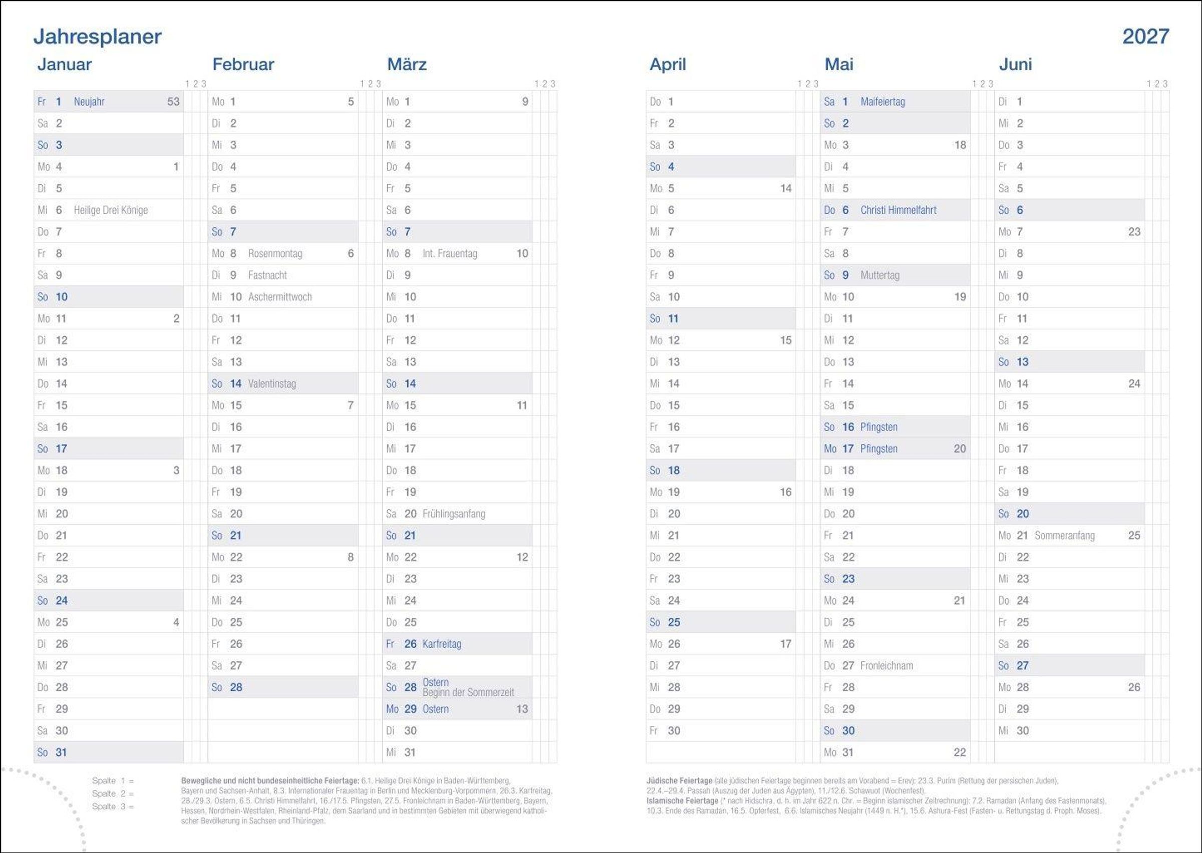 „2027“ steht neben einem Barcode. Ein Metall-Spiralringbuch mit hellbraunem, gebürstetem Umschlag ist zu sehen., Buch