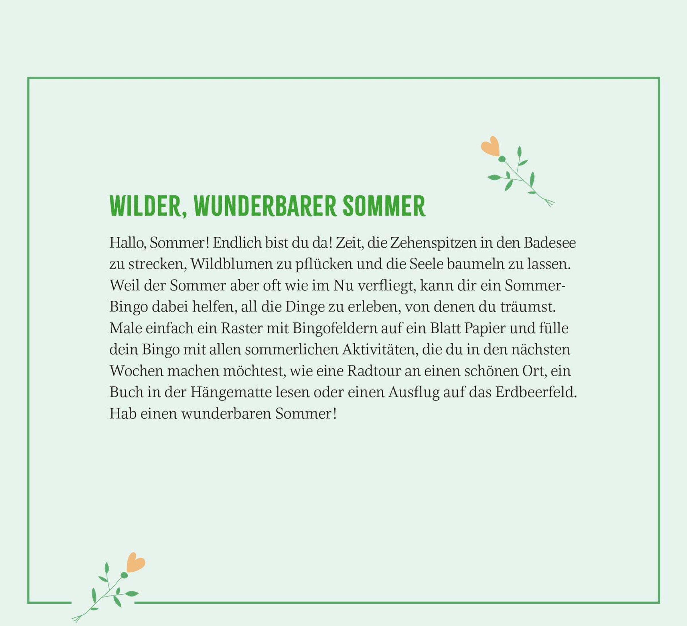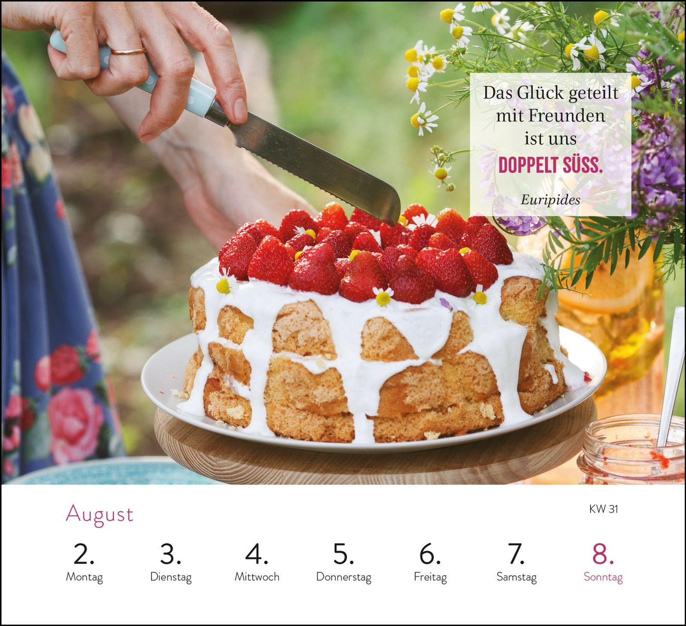 - Anregende Texte, Rezepte und Tipps rund ums Thema Glück auf den Rückseiten der Kalenderblätter
