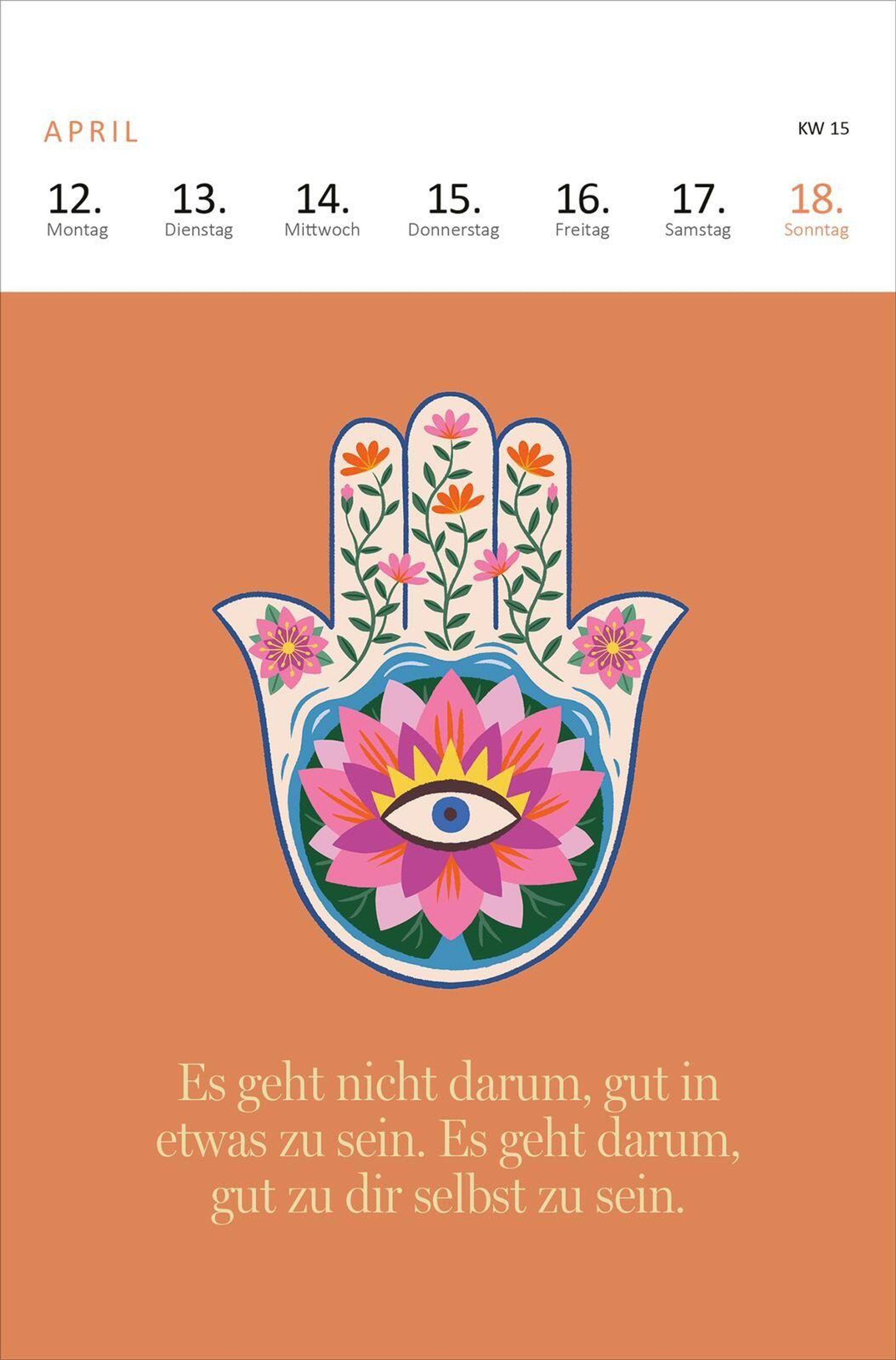 Ein wunderbares Geschenk für alle, die 2027 achtsam leben möchten und positive Affirmationen aus dem Bereich Yoga für ihren Alltag suchen. Dieser Aufstellkalender mit hochwertigen Fotografien und kunstvollen Illustrationen schenkt dabei an jedem Tag neue Kraft und Inspiration und ist eine Kraftquelle für die Seele. Jede Woche finden sich nach dem Umblättern ein paar schöne Yoga- und Achtsamkeitsimpulse, die durch den Tag begleiten. Das praktische Wochenkalendarium bietet einen guten Überblick über die Woche im Büro, Homeoffice oder zu Hause. Das Hochformat bringt die Zeichnungen ideal zur Geltung und sie laden dazu ein, neben allen To-dos jeden Tag bewusst zu genießen.