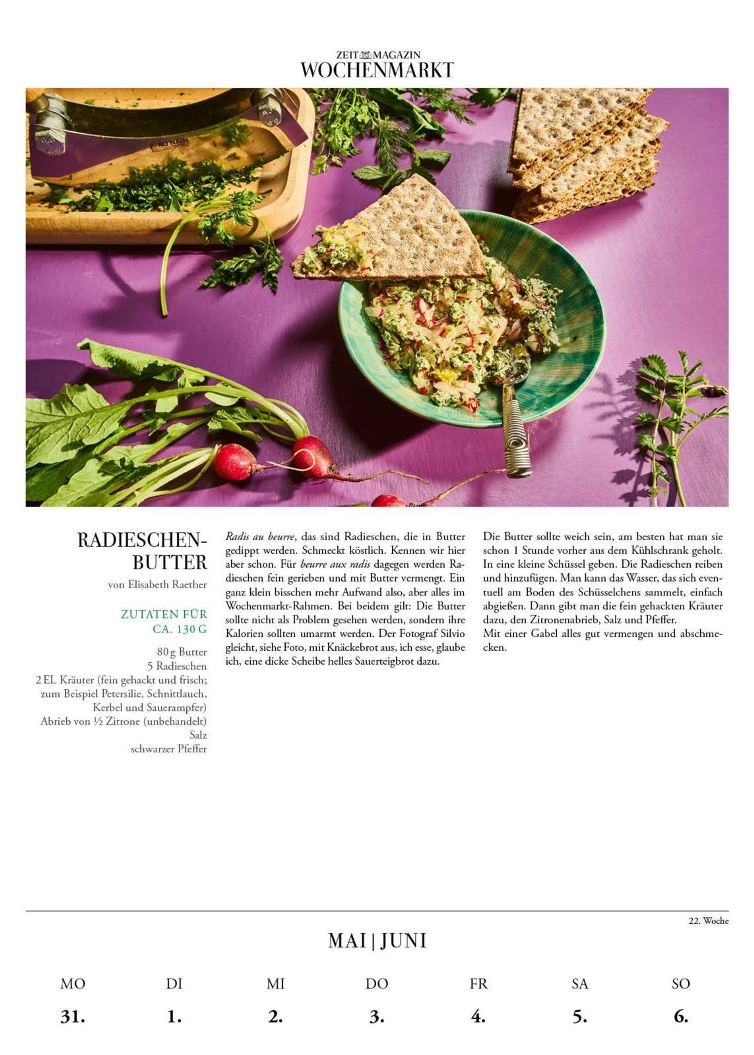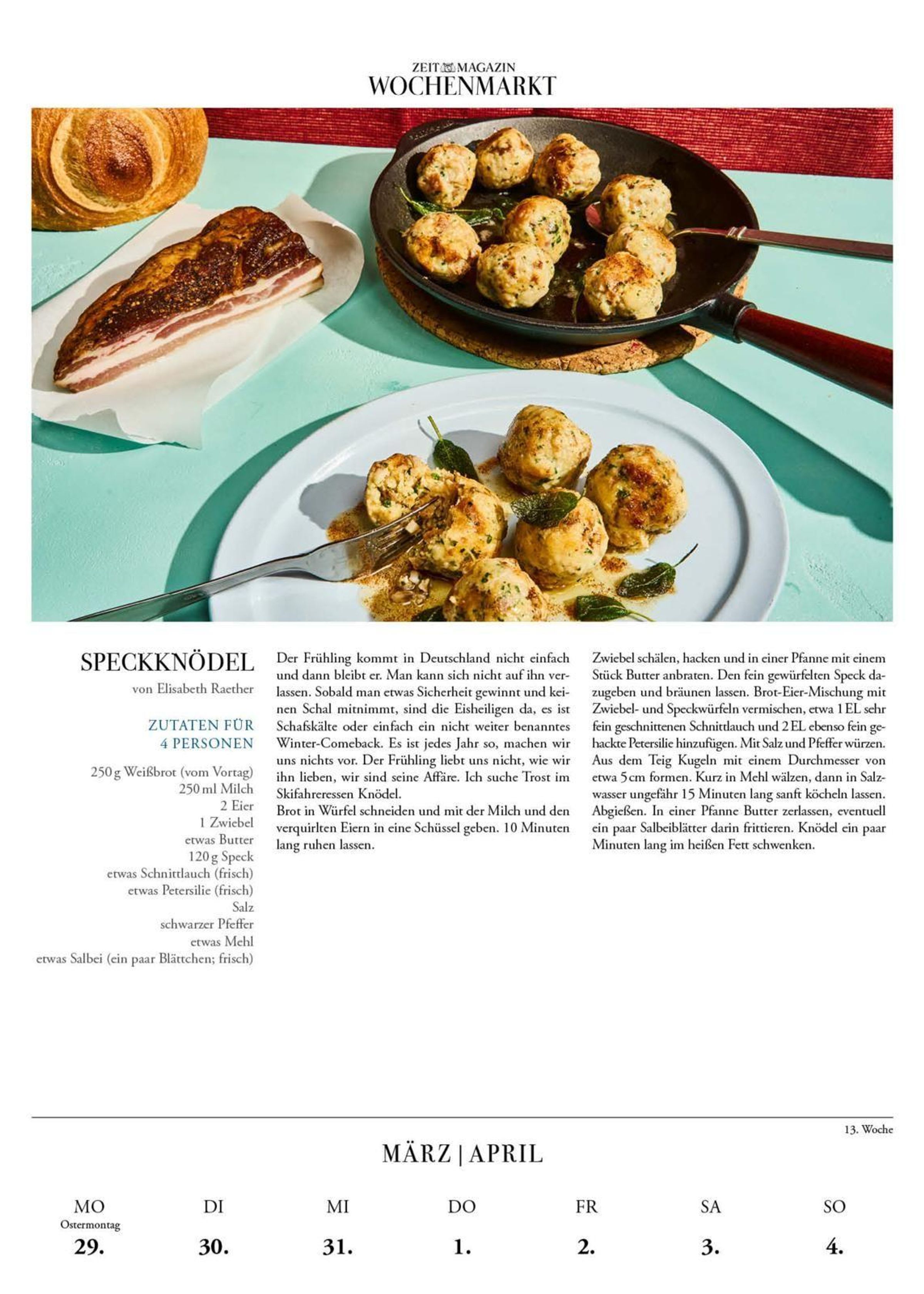 "ZEIT MAGAZIN WOCHENMARKT 2027. 53 frische und saisonale Rezepte." Teller mit Spargelgericht, daneben Zitronen., Kalender