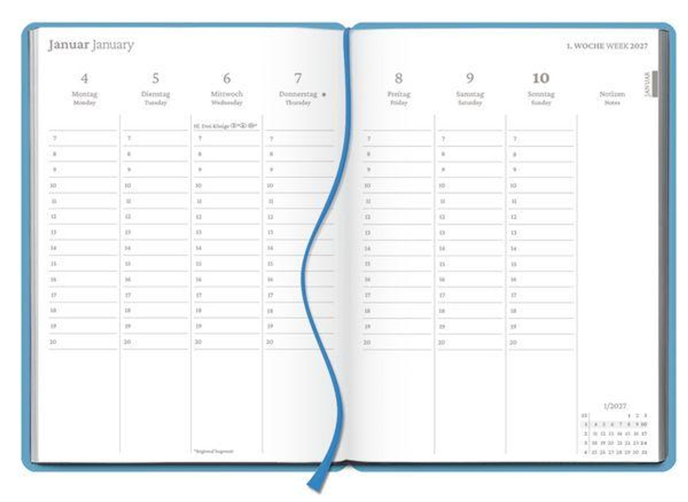 - mit 12-monat.-Kalendarium. Pro Woche 2 Seiten mit viel Platz für Notizen. Format 14,8 x 21 cm