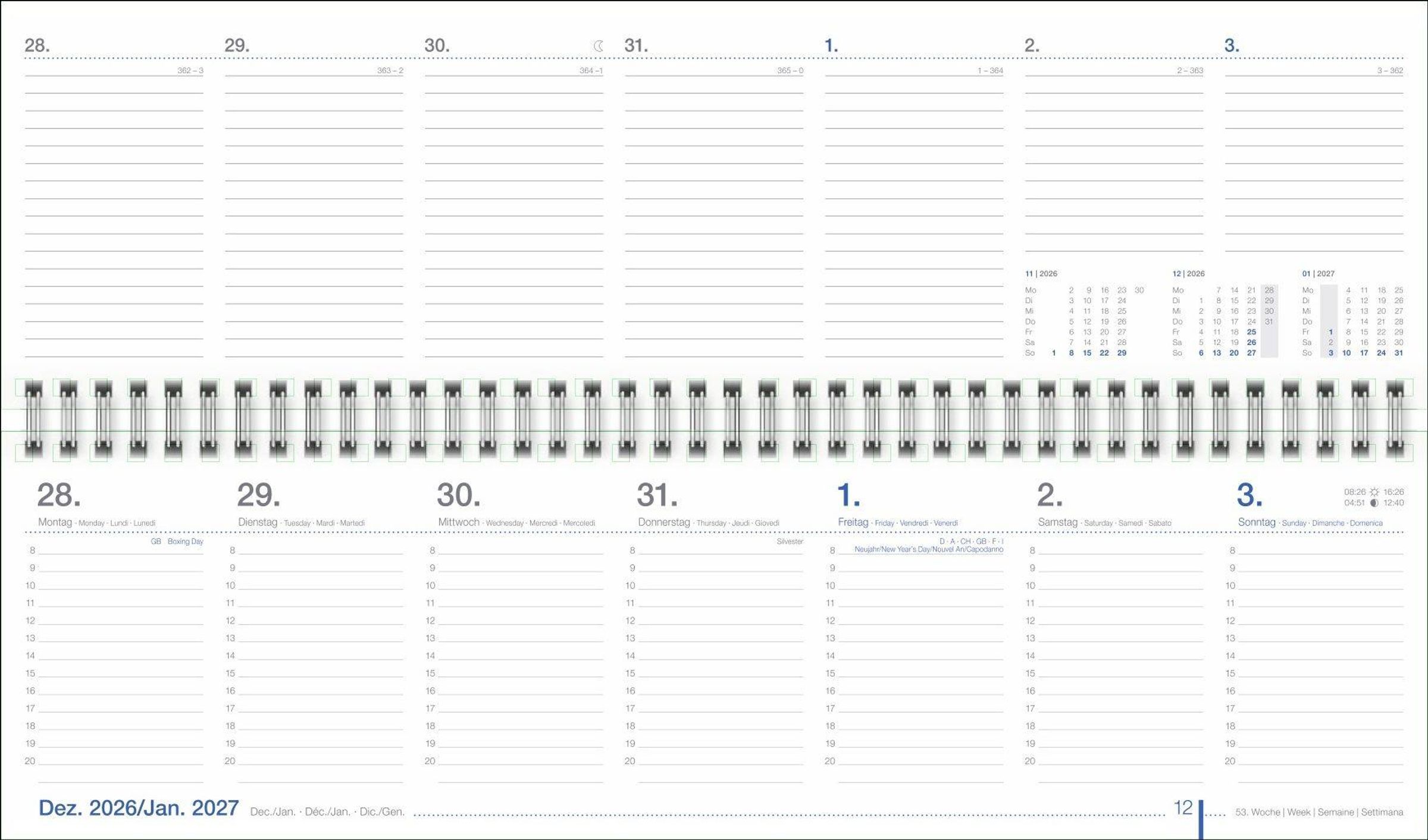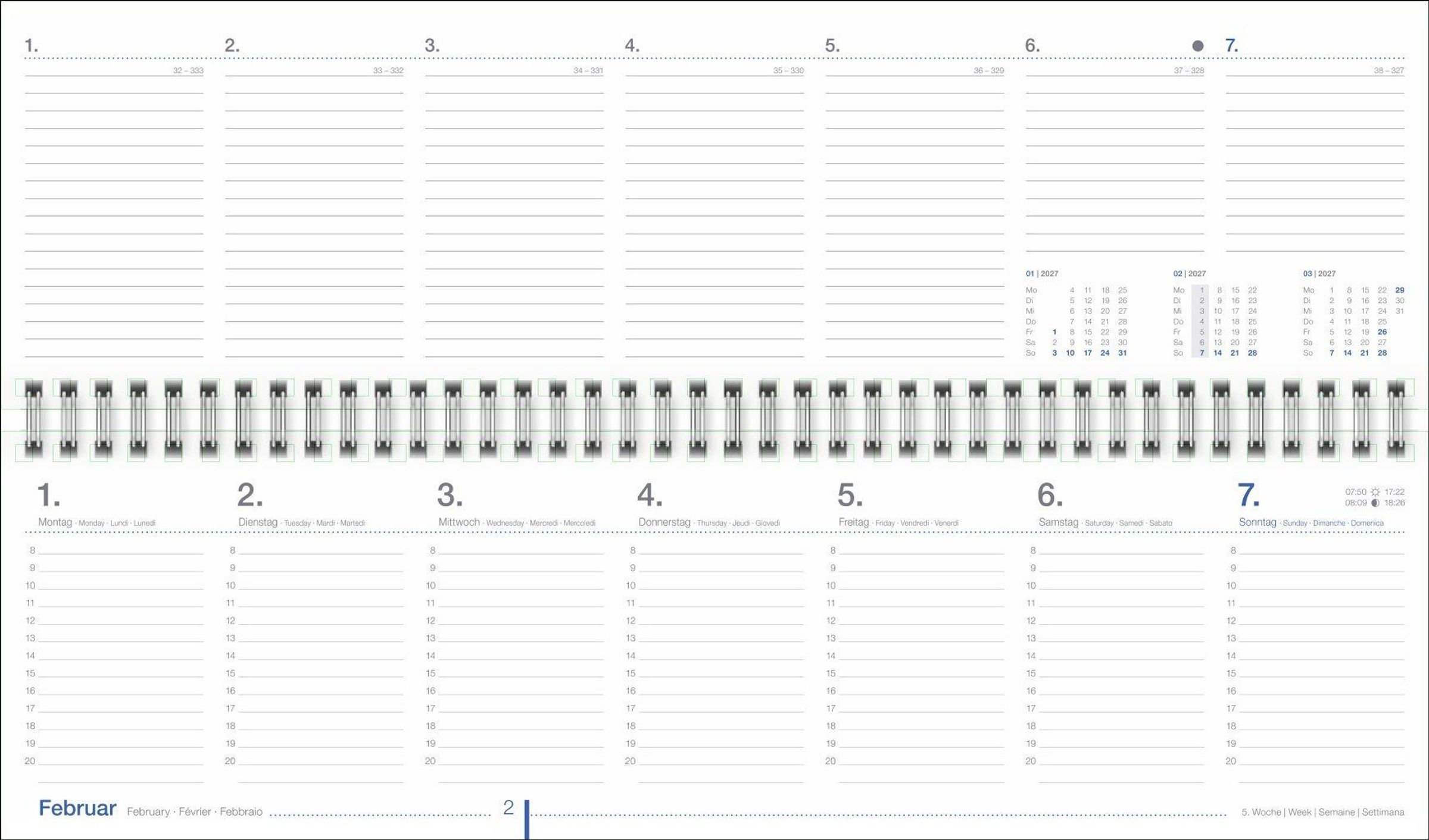 - Praktischer Tischquerkalender zum Umklappen. Zeitloser Spiral-Kalender 2027 fürs Büro. Wochenplaner für den Schreibtisch.
