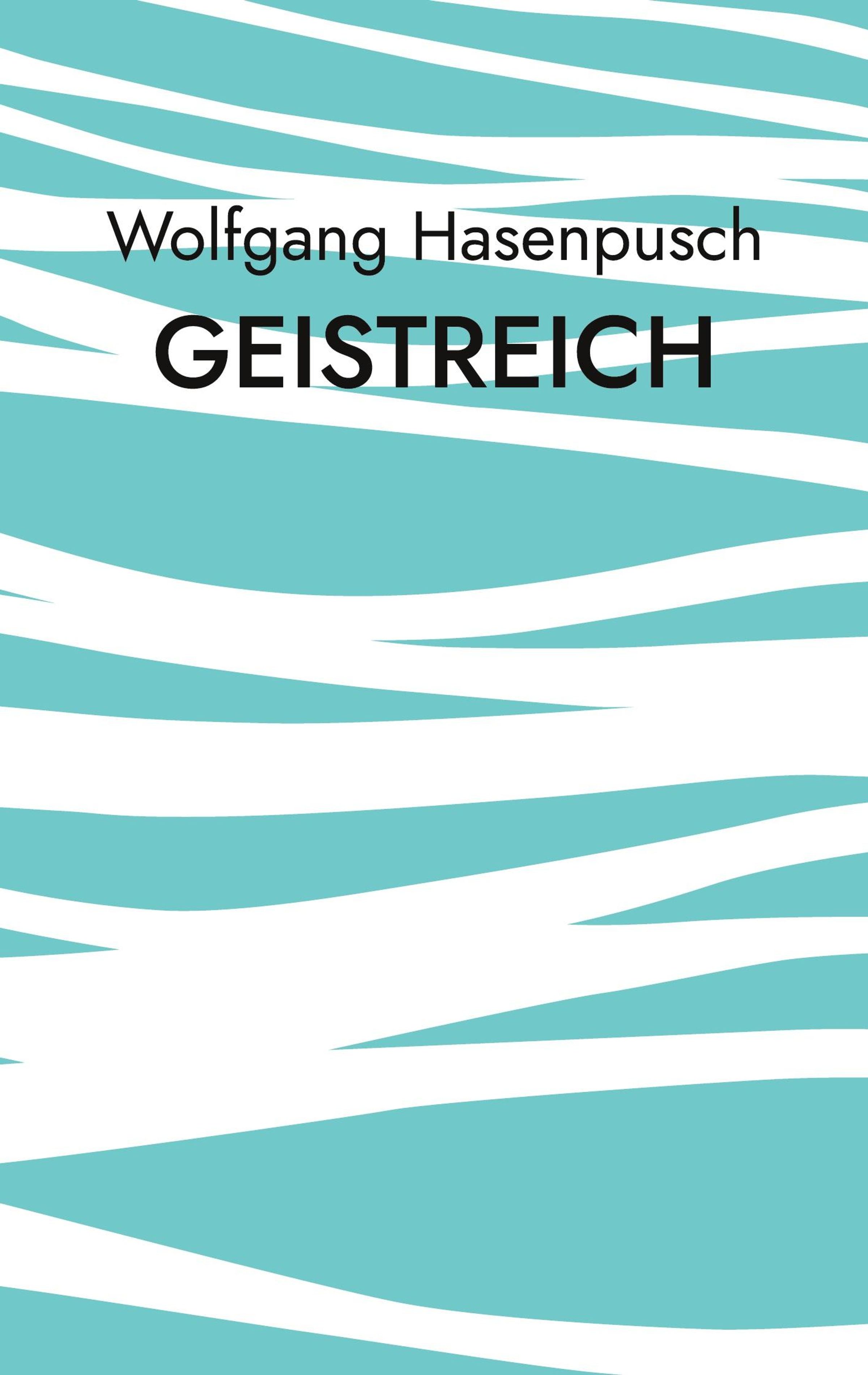 Text: "Wolfgang Hasenpusch GEISTREICH". Design: Türkis-weiße, wellenförmige Streifen., Buch