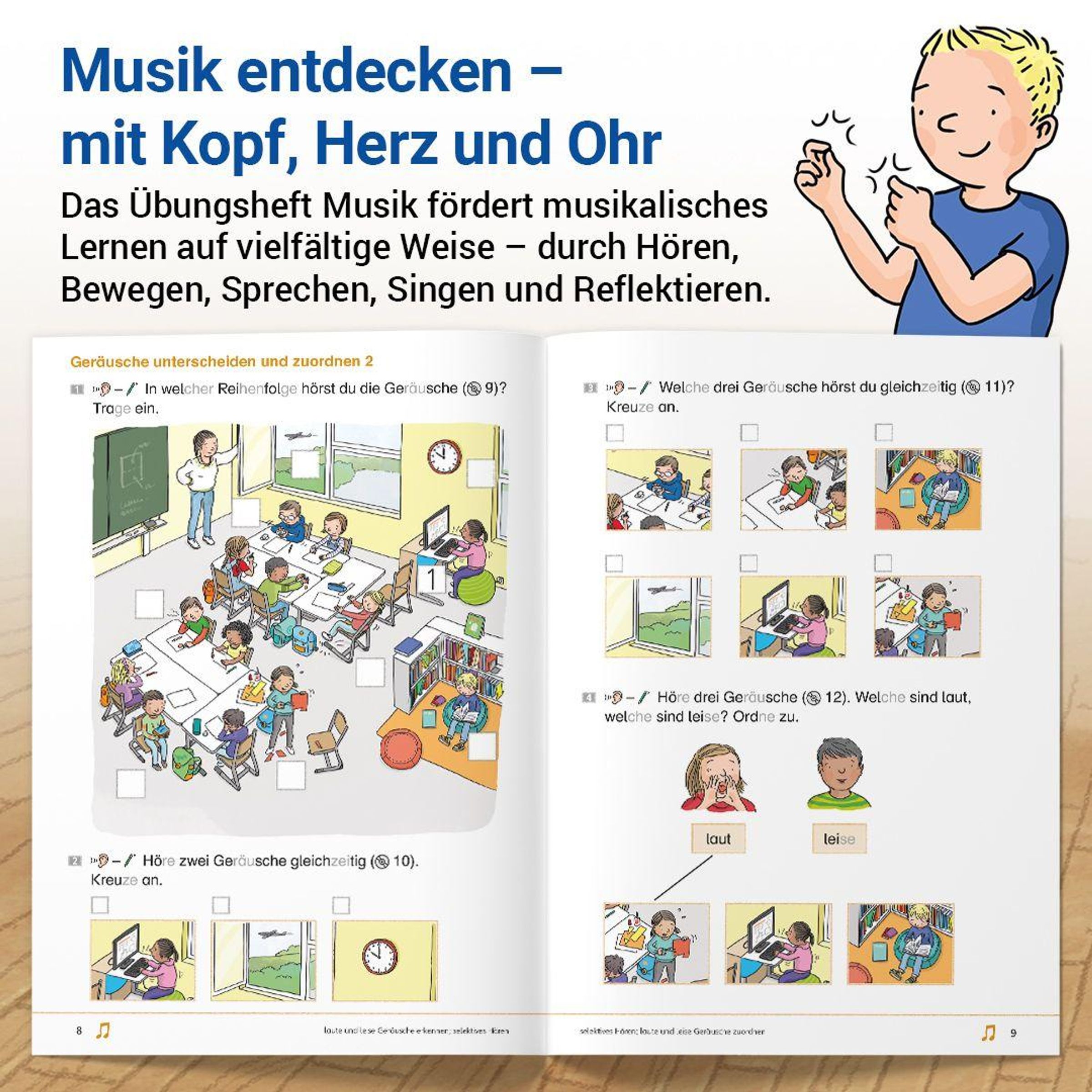 Die Übungen sprechen die unterschiedlichen Lerneingangskanäle der Kinder in vielfältiger Weise an: Sie lernen über Bewegung, über das Hören, Sprechen und Singen. Sie schreiben auf, reflektieren, vergleichen und übertragen. Selbsterklärende Aufgaben ermöglichen ein größtenteils selbstständiges Arbeiten mit dem Heft im Unterricht oder zu Hause.
