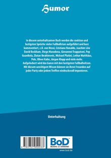 In diesem unterhaltsamen Buch werden die coolsten und lustigsten Sprüche vieler Fußballstars aufgeführt und kurz kommentiert, z. B. von Messi, Cristiano Ronaldo, Joachim Löw David Beckham, Diego Maradona, Giovannni Trappatoni, Pep Guardiola, Zlatan Ibrahimovic, Michael Platini, Lothar Matthäus, Pele, Oliver Kahn, Jürgen Klopp und viele mehr. Aufgelockert wird das Ganze mit den lustigsten Fußballwitzen. Mit diesem unnötigem Wissen können sie ihren Freunden auf jeder Party oder jedem Treffen eindrucksvoll imponieren.