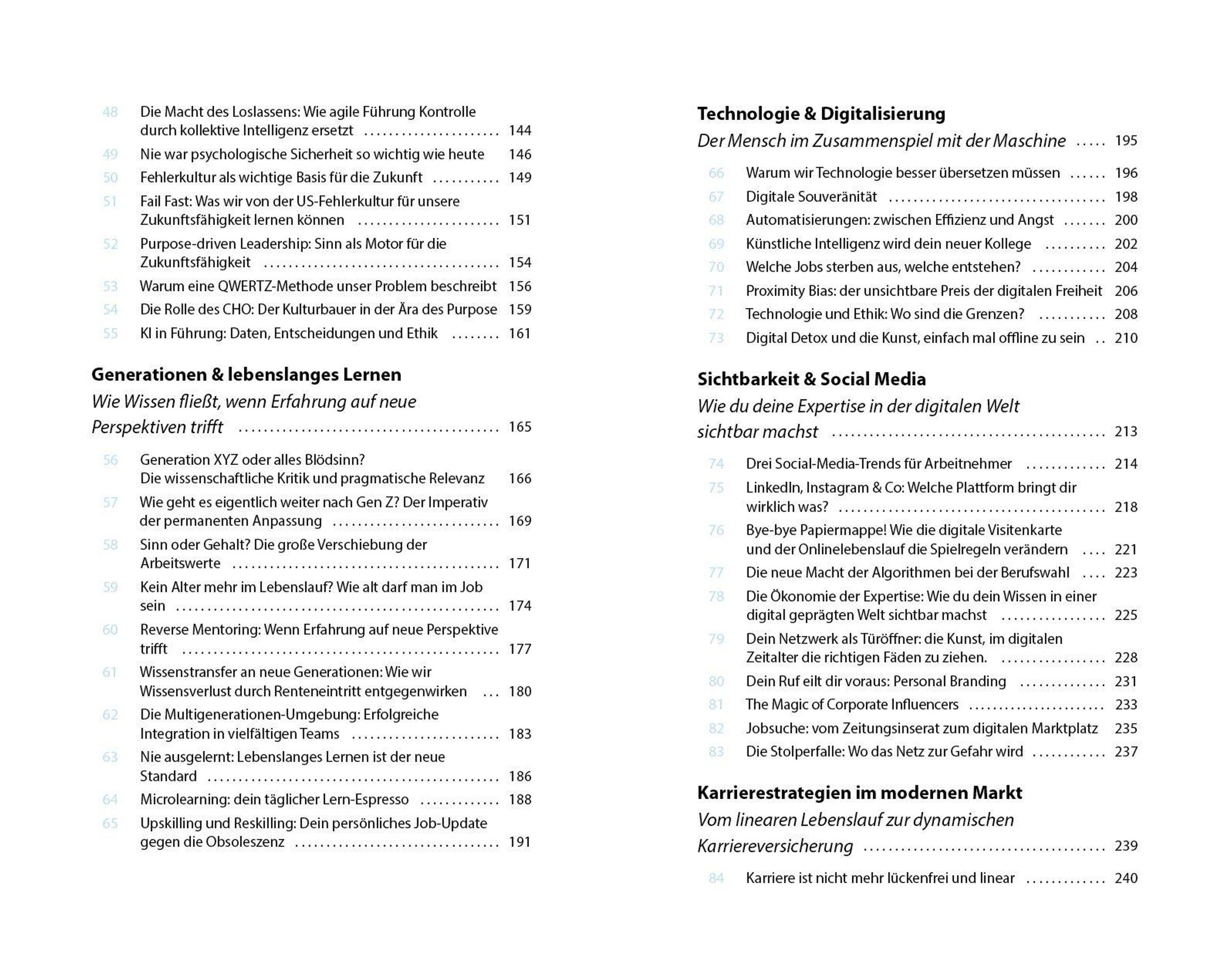 Dieses Buch liefert 100 Impulse für alle, die nicht einfach funktionieren, sondern gestalten wollen. Fundiert, aufrüttelnd, konkret. Es geht um Machtspiele im Büro und mentale Gesundheit, um KI am Arbeitsplatz und die leisen Krisen in lauten Karrieren.