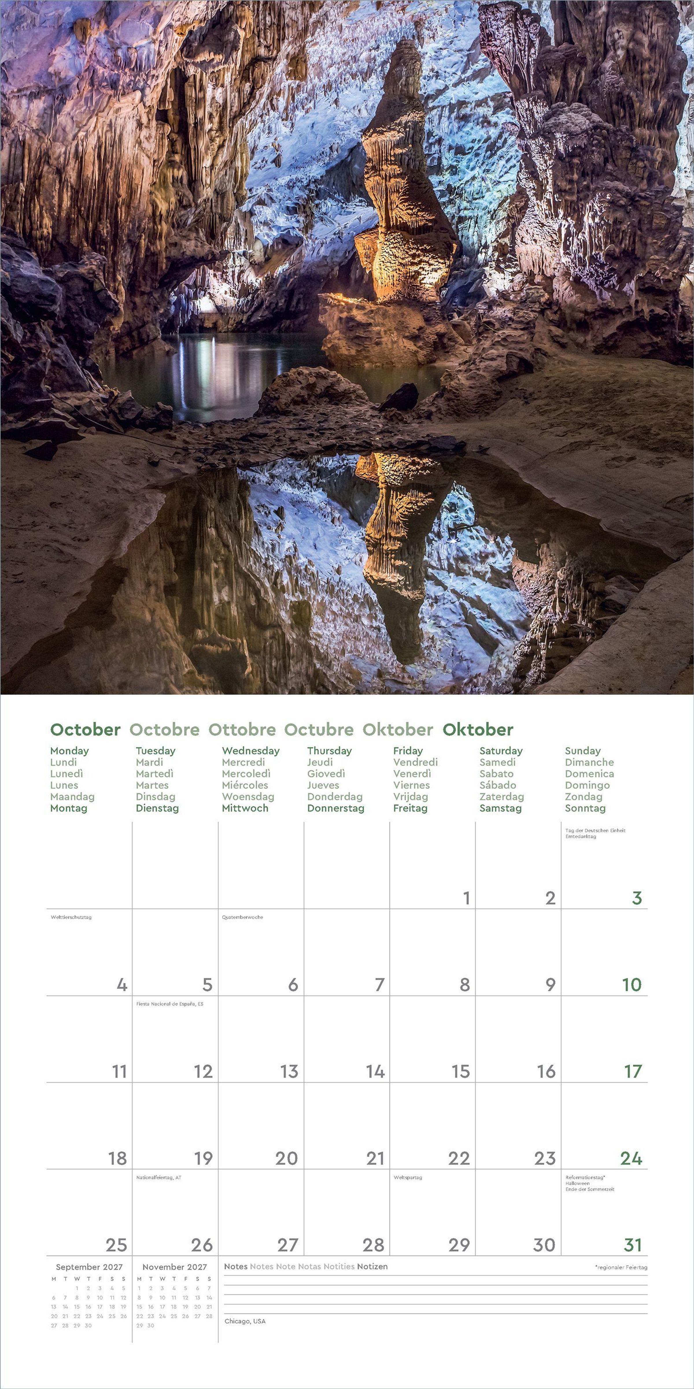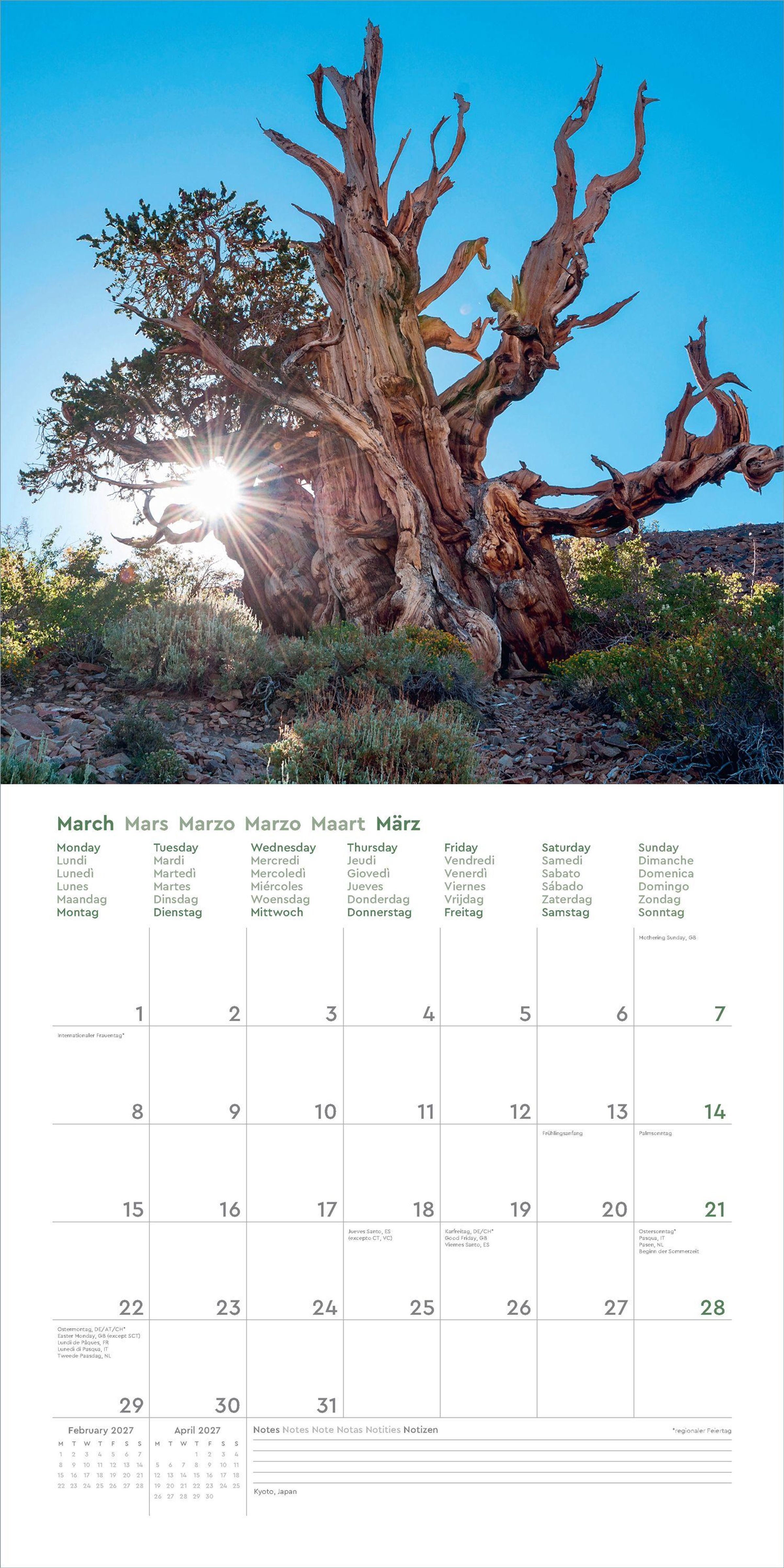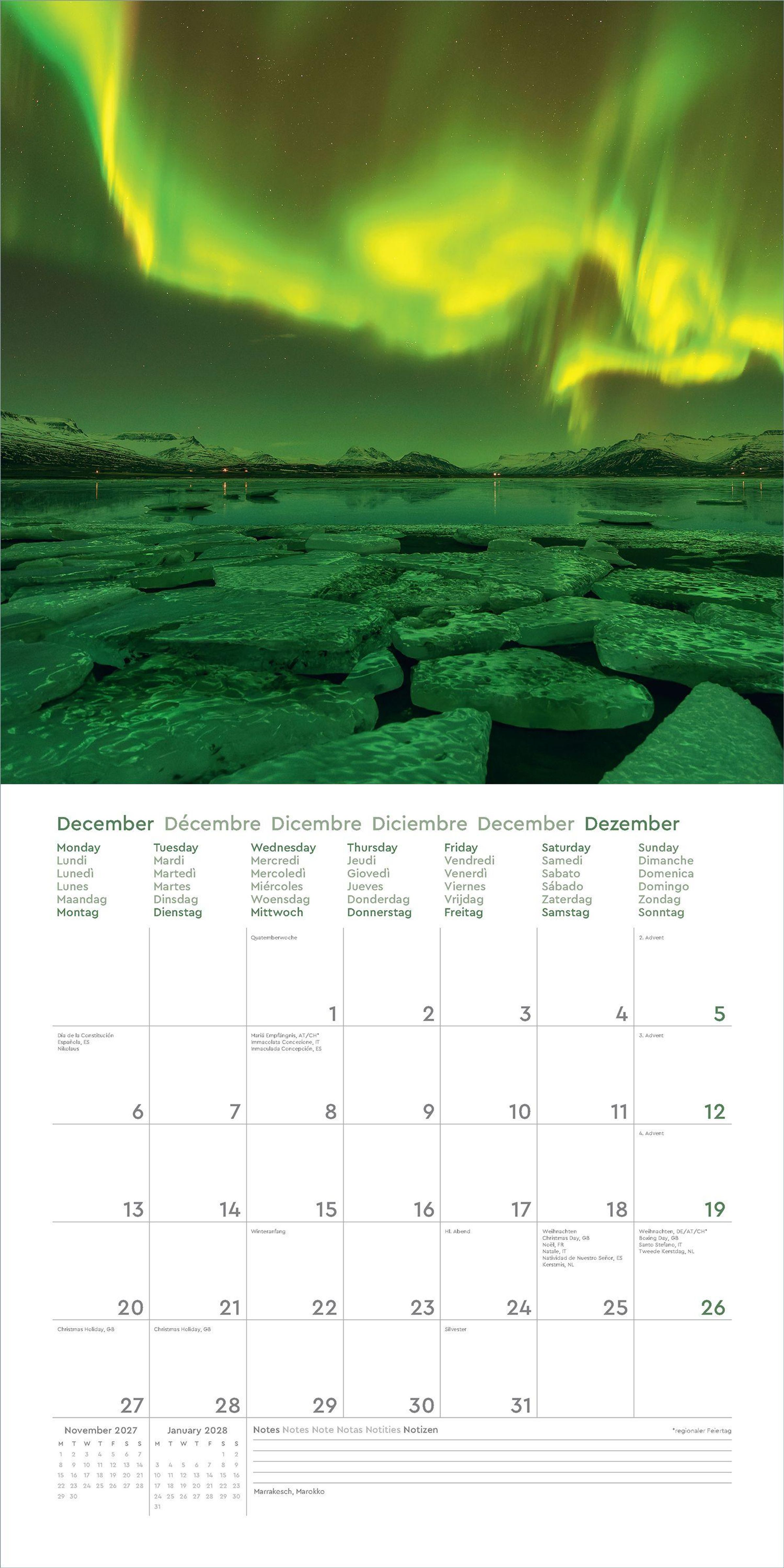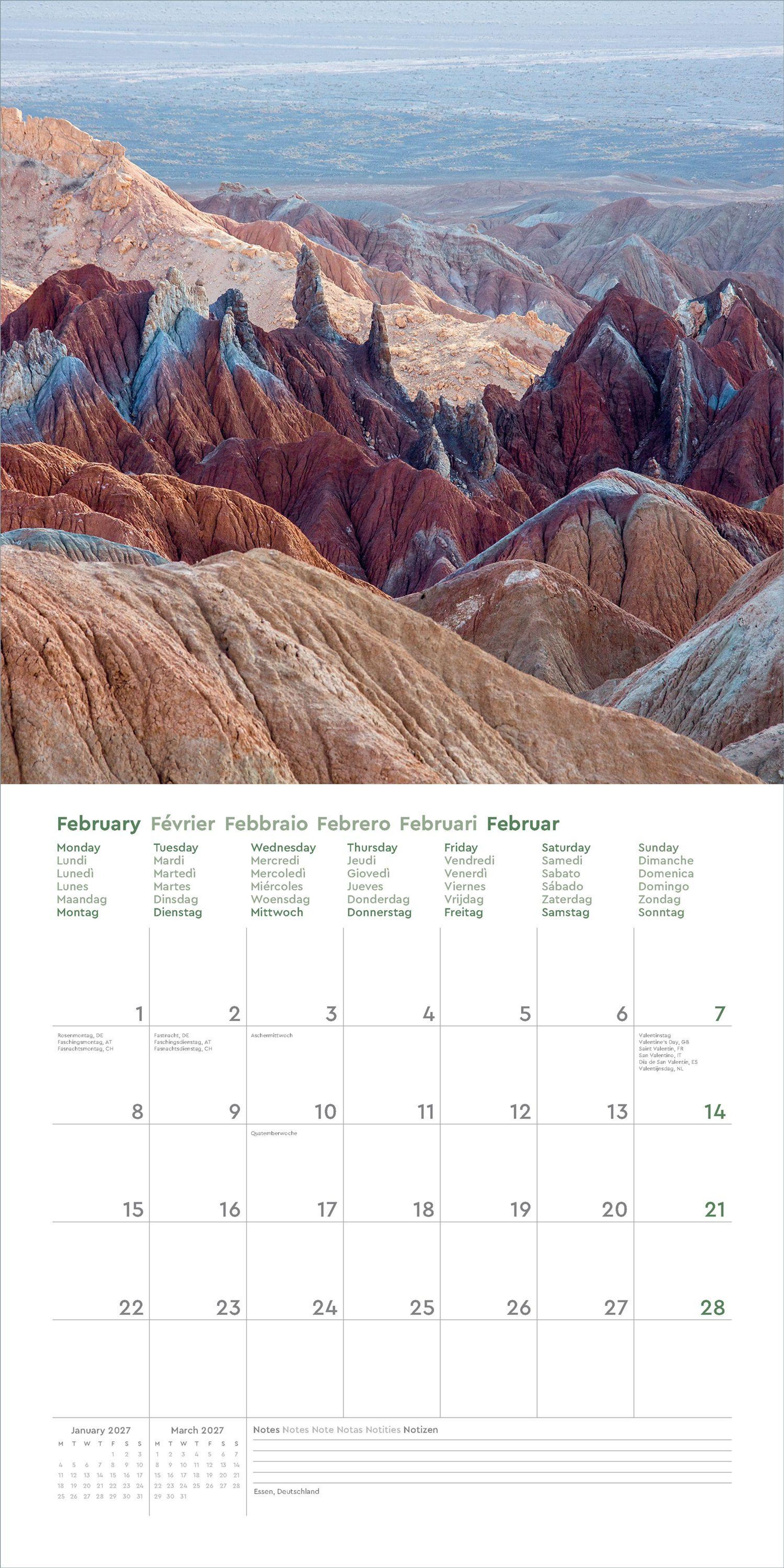 Aufgeklappt zeigt der Broschürenkalender Fotografien zum Wegträumen und bietet gleichzeitig viel Raum für Notizen Tag um Tag. Auch nach dem Jahr eignen sich die 30 x 30 cm großen Bilder als Poster.