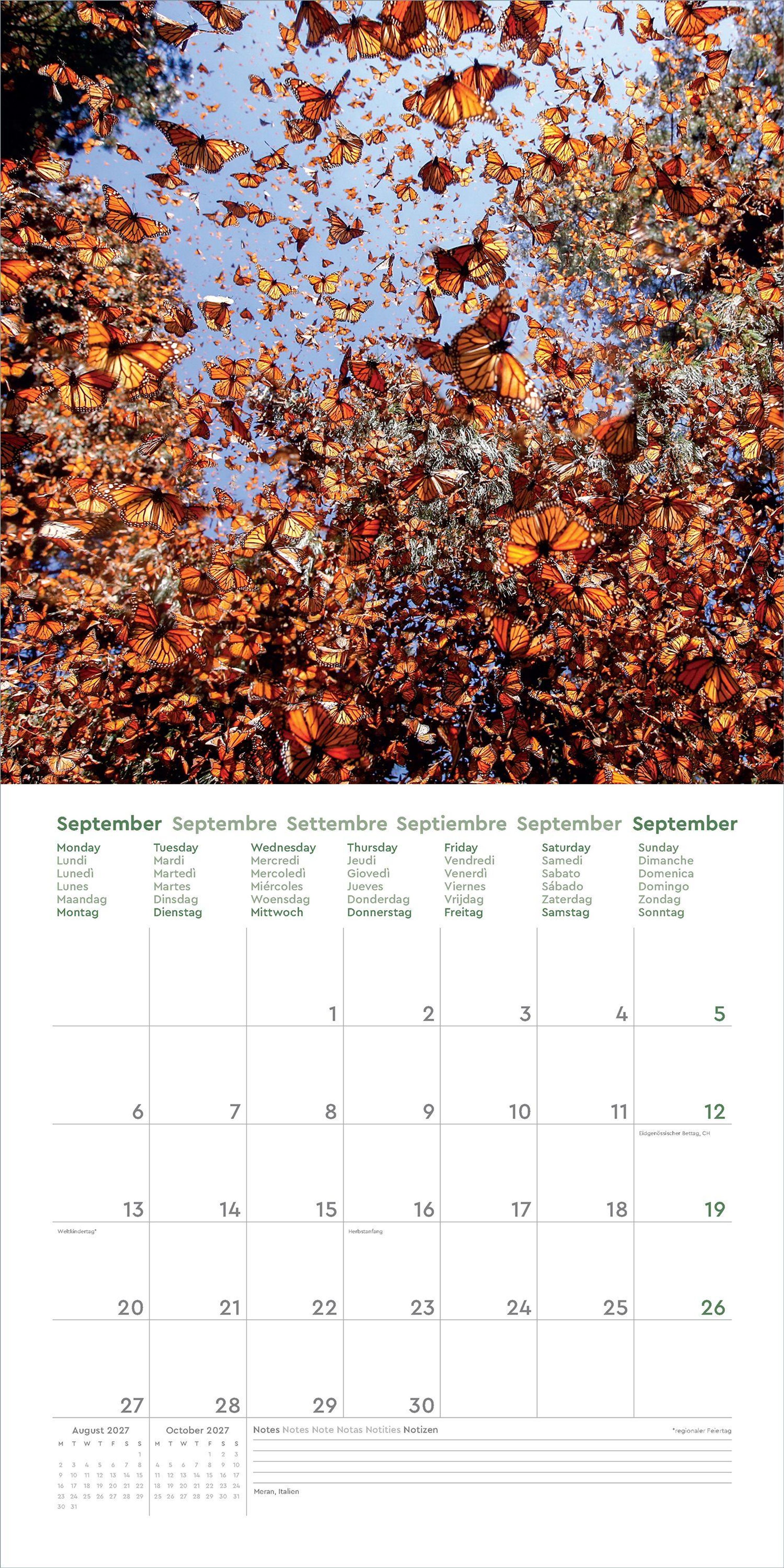 - Farbenprächtiger Wandkalender mit Monatskalendarium für Notizen