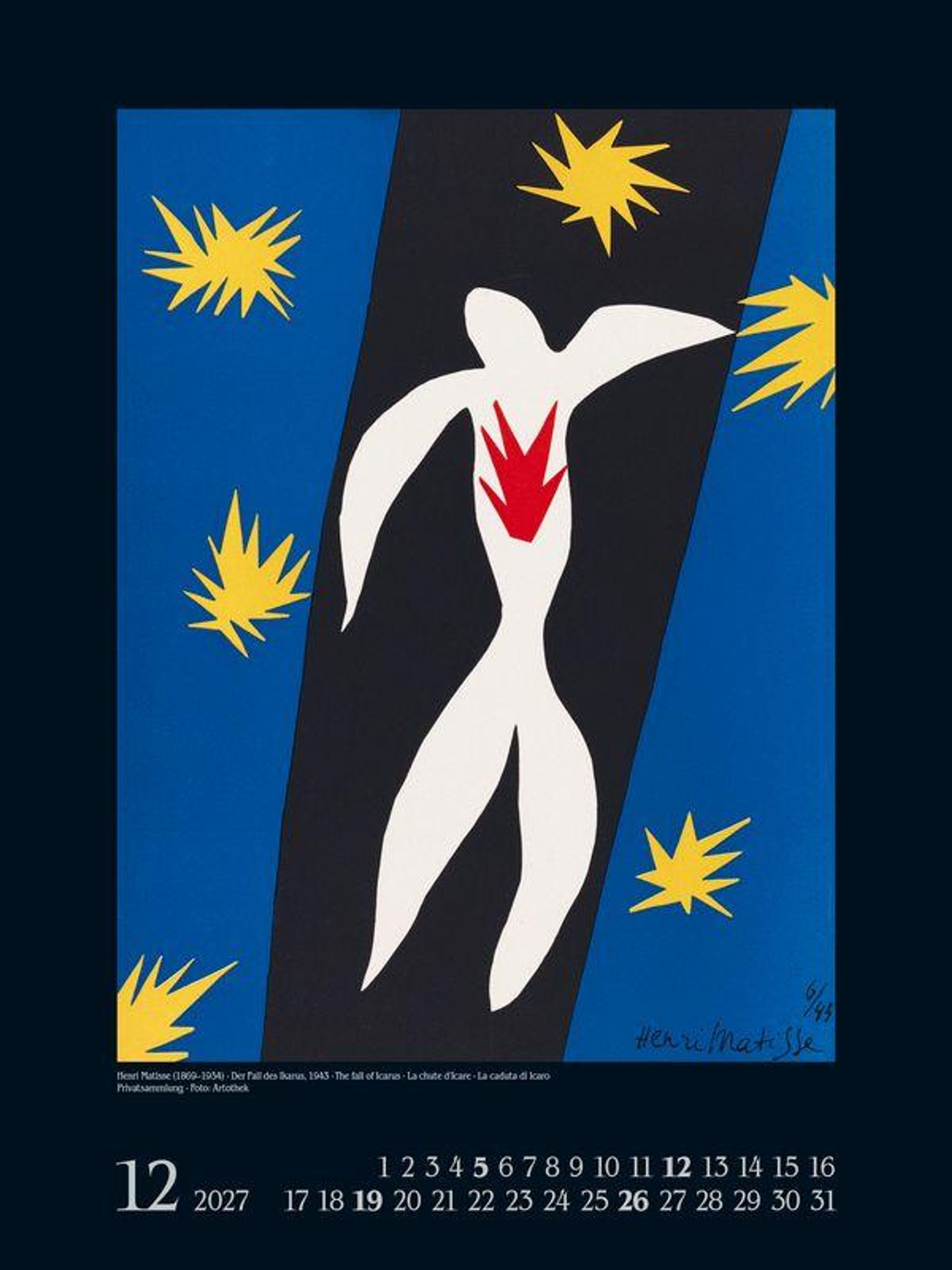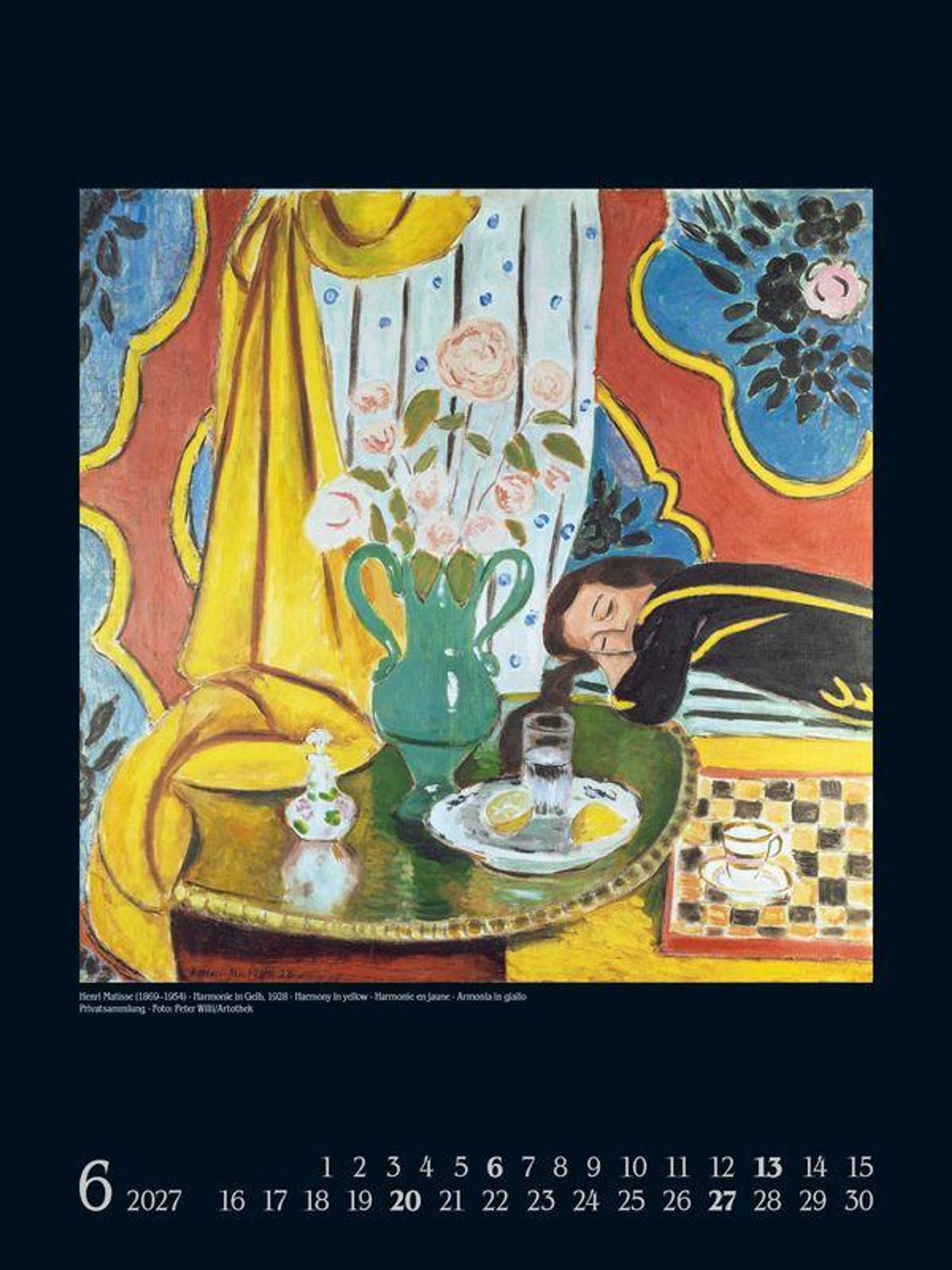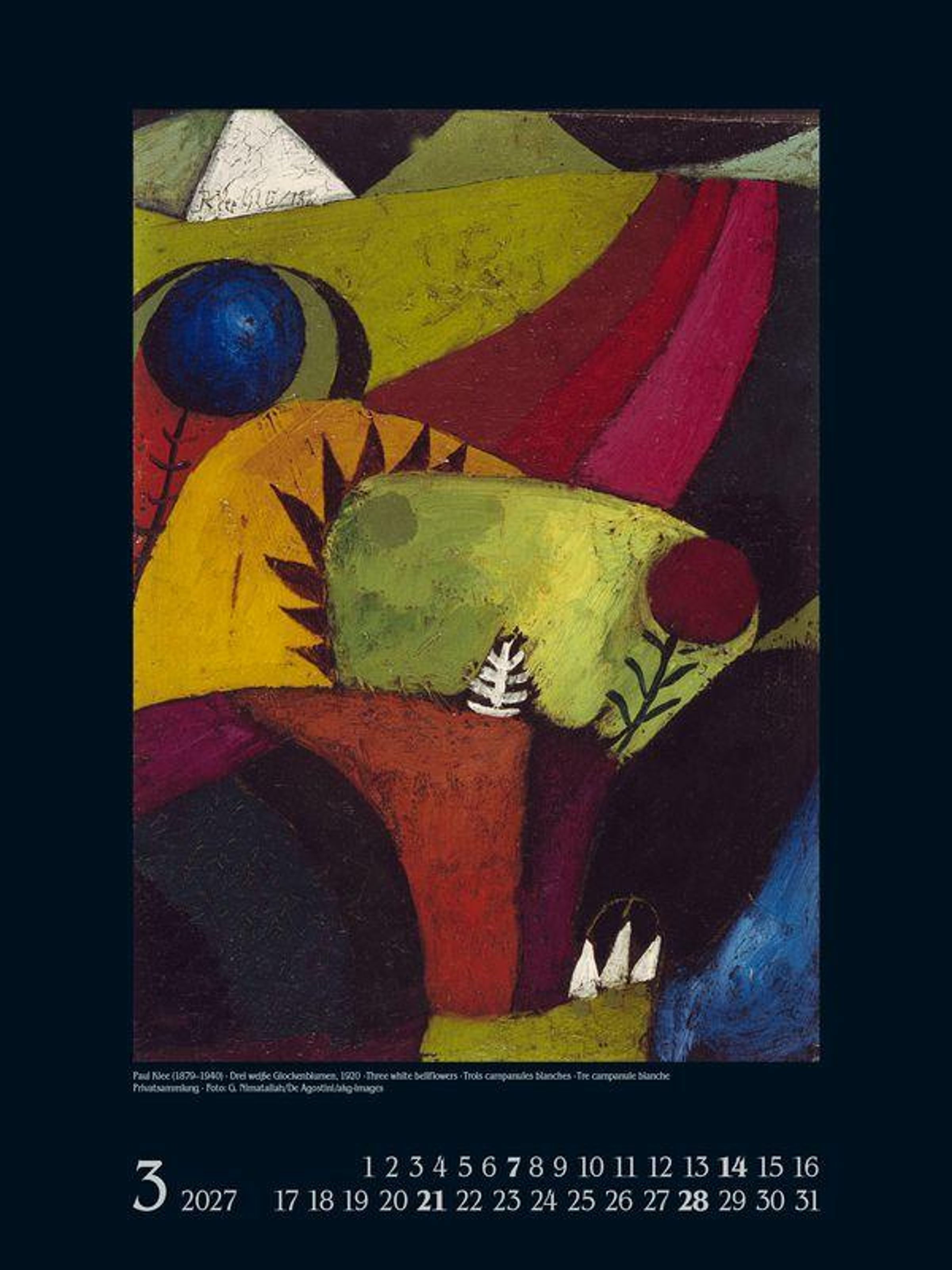 Dieser Kalender ist eine Einladung, der Augenlust zu frönen, die kleinen Dinge und die großen Gefühle zu genießen und die Heiterkeit des Herzens in der Wunderwelt der Kunst zu entdecken. Meisterhafte Werke von Kandinsky, Macke, Klimt, Matisse, Klee und Gaby Blam entführen den Betrachter in diesen einzigartigen Kosmos der Kunst.