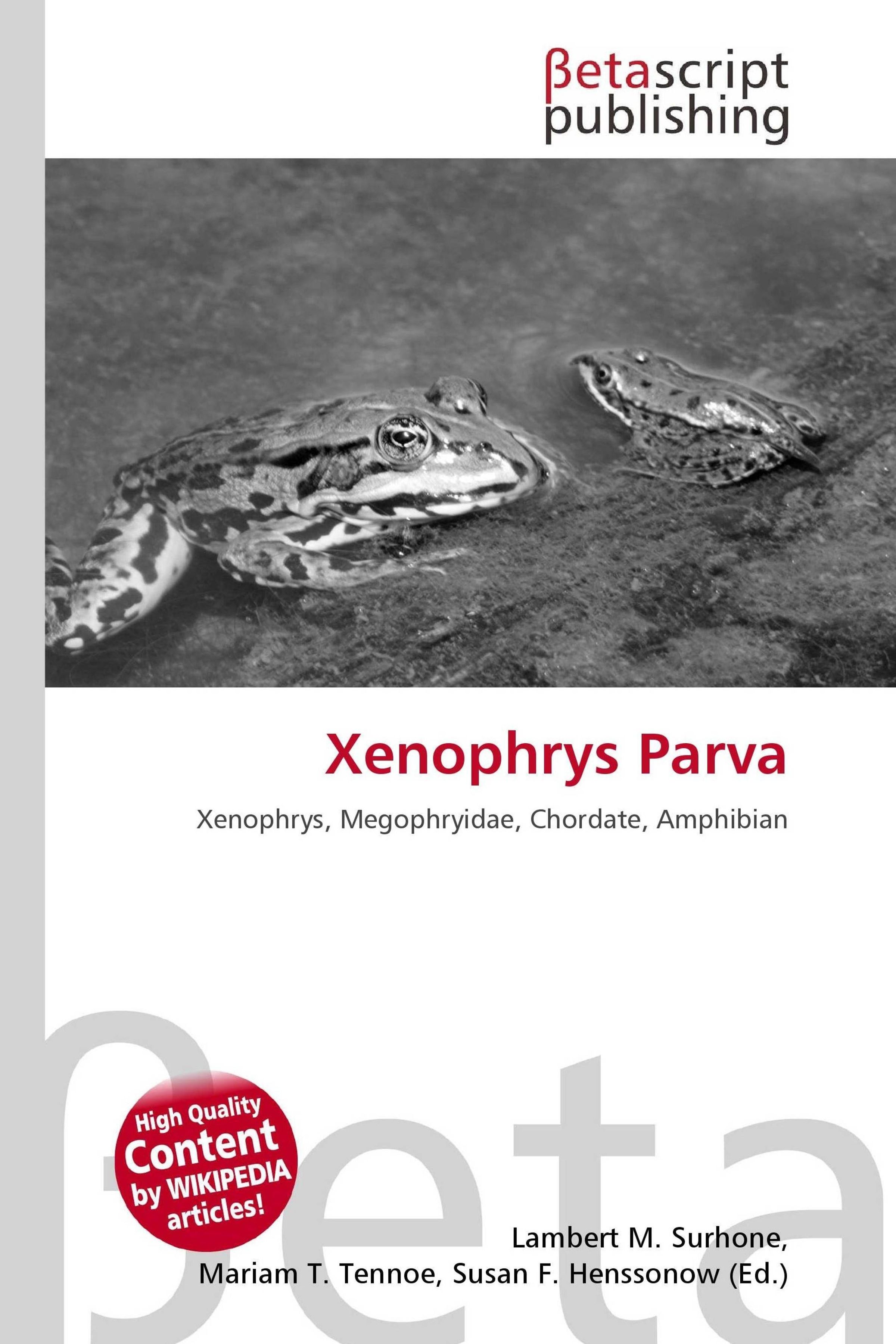 Please note that the content of this book primarily consists of articles available from Wikipedia or other free sources online. Xenophrys parva is a species of toad found in Asia. It is found in Malaysia, Thailand, and possibly Cambodia. Its natural habitats are subtropical or tropical moist lowland forests and rivers. It is threatened by habitat loss. A distinction between frogs and toads, though common in popular culture, is not made in taxonomy, where toads are spread across families Bufonidae, Bombinatoridae, Discoglossidae, Pelobatidae, Rhinophrynidae, Scaphiopodidae, and Microhylidae. The characteristic features of toads are a result of convergent adaptation to dry habitats.