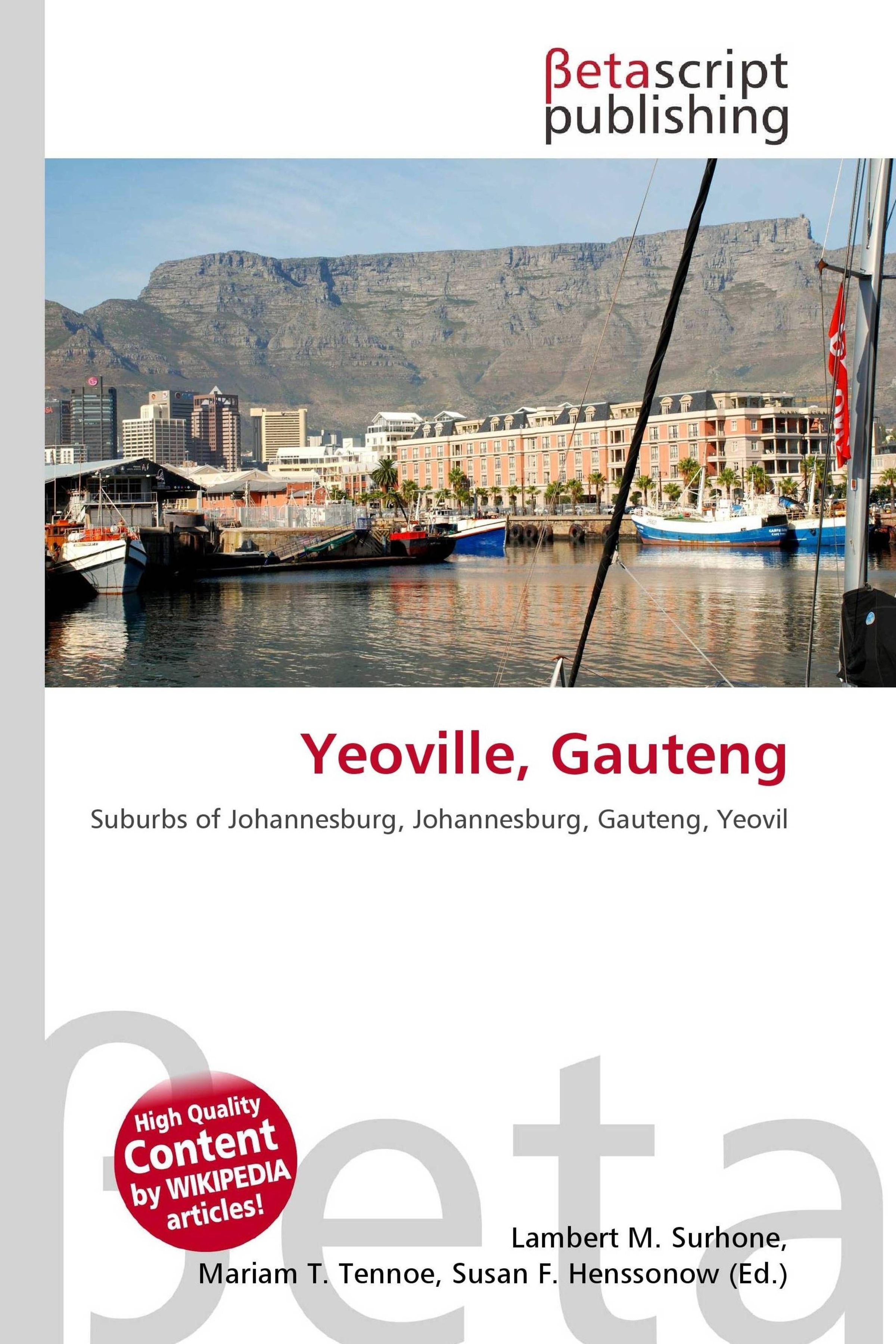 Please note that the content of this book primarily consists of articles available from Wikipedia or other free sources online. Yeoville is a suburb of Johannesburg, in the province of Gauteng, South Africa. It is located in Region F (previously Region 8). Yeoville was proclaimed as a suburb in 1890 (four years after the discovery of gold led to the founding of Johannesburg) by Thomas Yeo Sherwell, who came from Yeovil in the United Kingdom. The area was advertised as a 'sanitarium for the rich' in which the air was purer because it was up on a ridge overlooking the dirty, smoke-filled mining town that had sprung from nothing out of the (then) Transvaal bushveld. However, the rich did not buy into the suburb. Instead it became a multiclass area, one to which many poorer people living below the ridge in Doornfontein aspired. It was also a place which attracted many of the waves of migrants from abroad that came to South Africa seeking a new life.