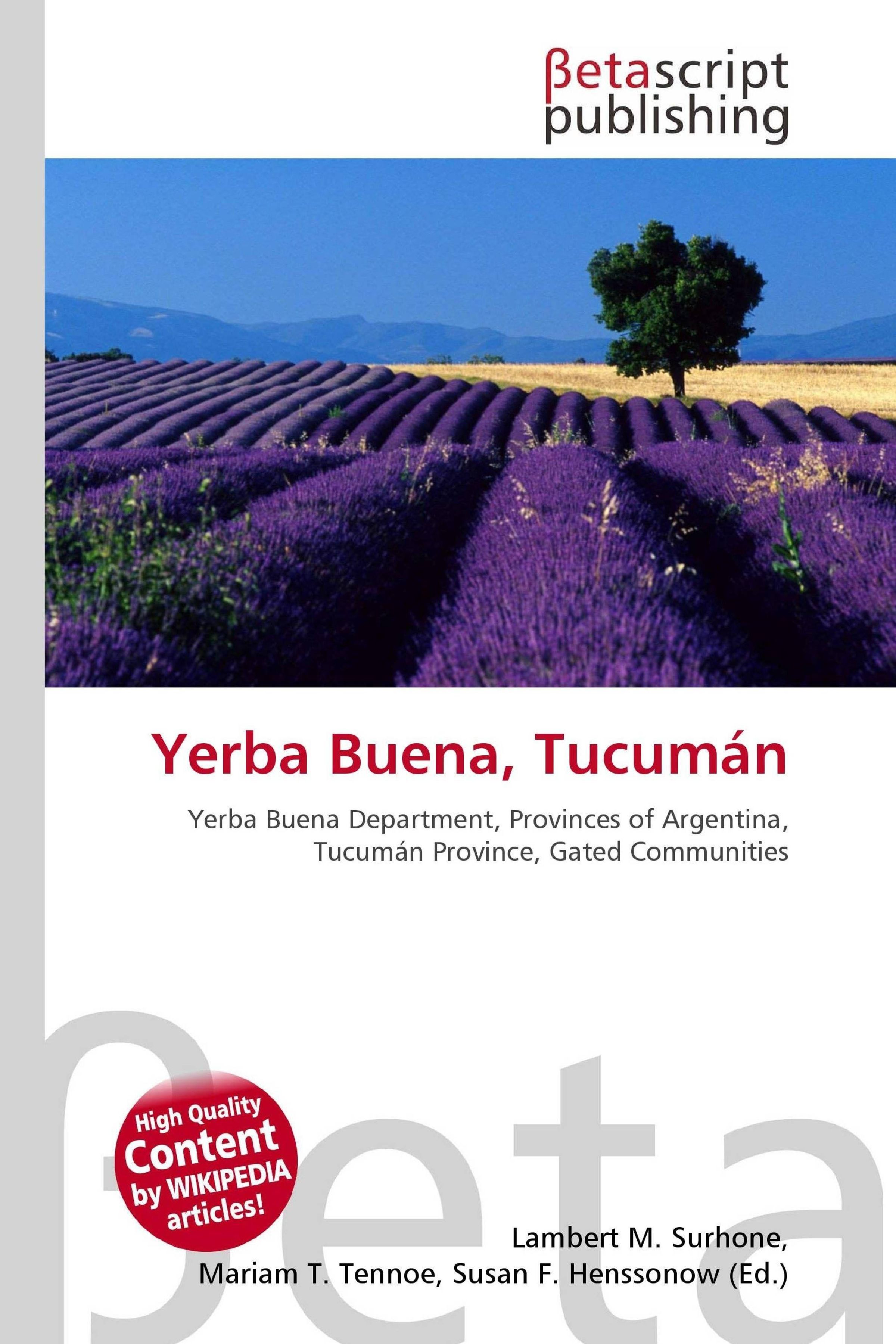 Please note that the content of this book primarily consists of articles available from Wikipedia or other free sources online. Yerba Buena is the capital of the Yerba Buena Department in the province of Tucumán, Argentina. It's located at coordinates 26°49S 65°19W / 26.817°S 65.317°W / -26.817; -65.317, at an altitude of around 466 meters (1528 feet). The city of Yerba Buena is the department seat and the most urbanized area as well. It is mostly residential, though an always-increasing commercial activity can be observed along its main road: Aconquija Avenue. Different kind of stores, shopping arcades, restaurants, bars and cafés line along this avenue giving the area a very lively atmosphere, especially on weekends, when yerbabuenenses and people from its neighboring cities gather in search of fun and relaxation. Yerba Buena is home to most of the country clubs and gated communities in the province. However, some of its residents live in slums scattered around the city.