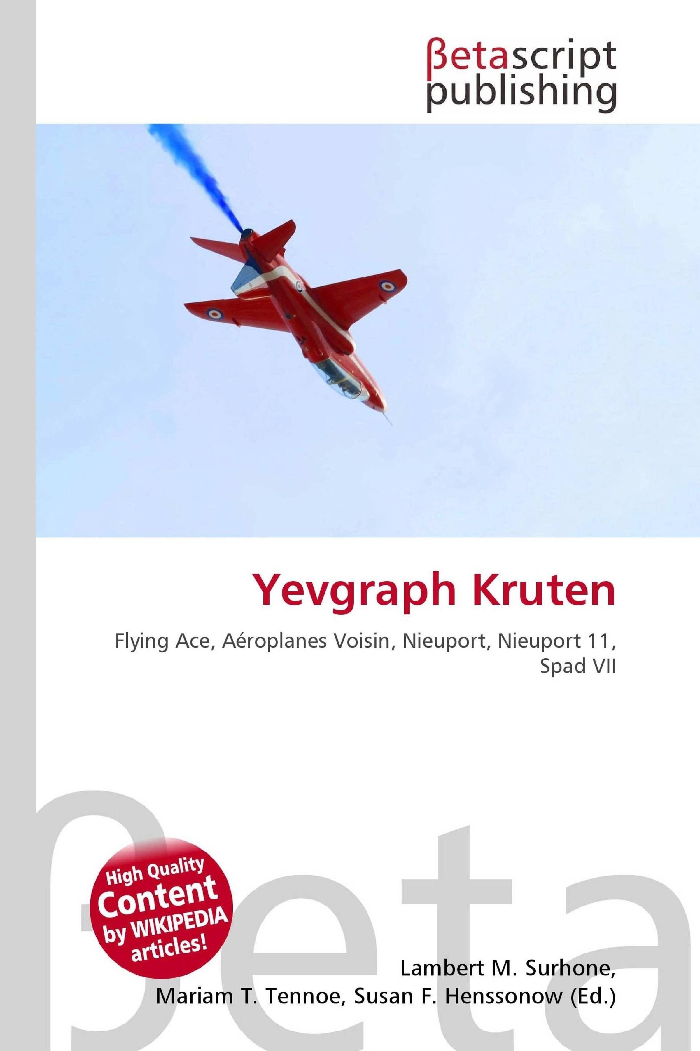 Please note that the content of this book primarily consists of articles available from Wikipedia or other free sources online. Podpolkovnik Yevgraph Nikolaevich Kruten was a World War I flying ace credited with seven aerial victories. Kruten was born into a family with a military tradition. In 1901, aged 11, he attended the Kiev Military Cadet Corps School. He was forwarded to mounted artillery in 1908. In 1911, he was commissioned. Two years later, he became an aerial observer. Not long after that, he trained as a pilot. At the outbreak of war, Kruten began flying reconnaissance and bombing missions. When he scored his first aerial victory on 6 March 1915, piloting a Voisin over Ravka, he was awarded the Order of Saint Anne Fourth Class. The following year, Kruten's 2nd Air Combat Group re-equipped with Nieuports, and a Nieuport 11 was what he used for his victories on 11 and 14 August 1916.