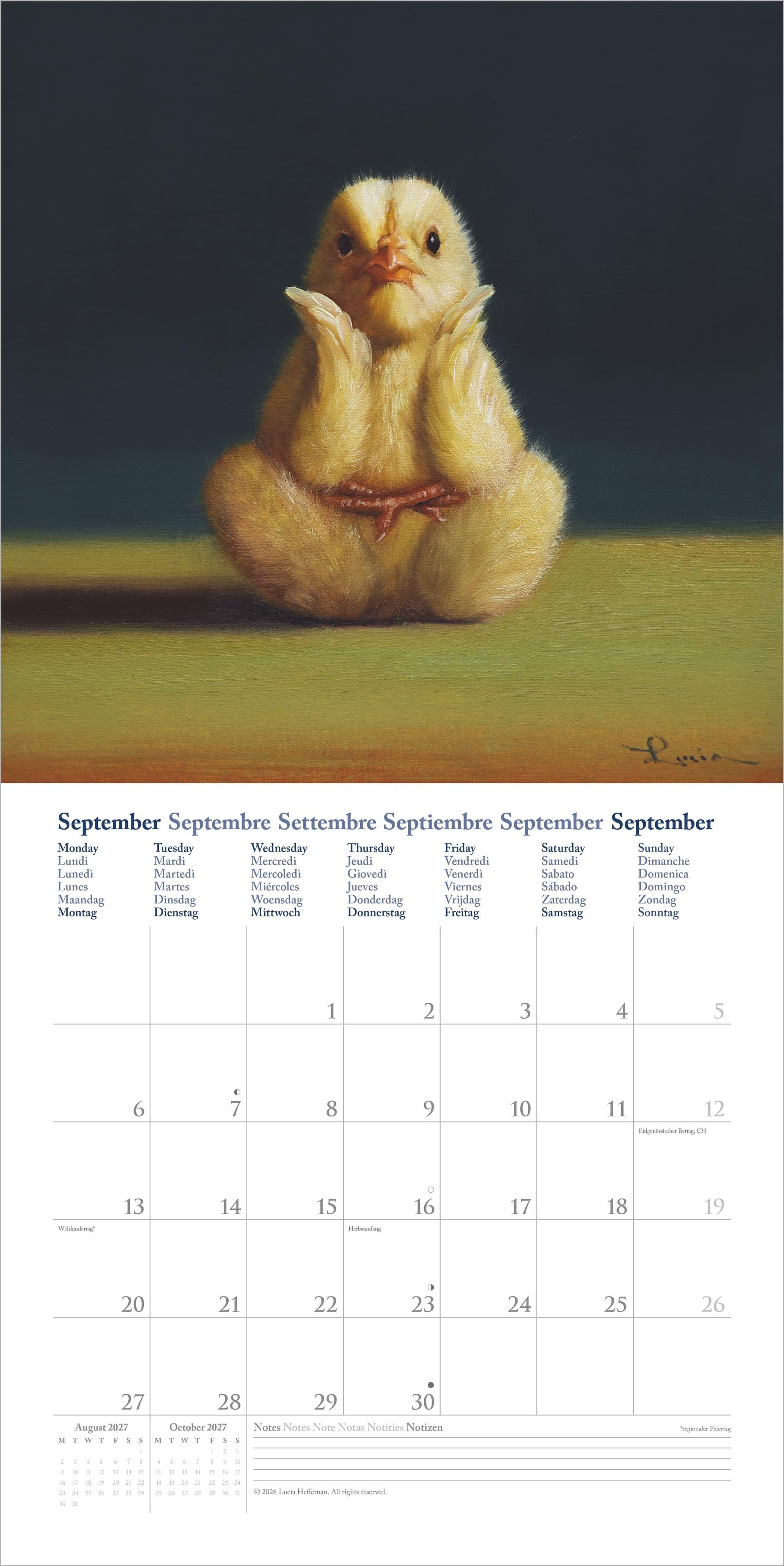 Der DUMONT Broschürenkalender 2027 „Yoga Chicks" bringt gute Laune in den Alltag: Die amerikanische Künstlerin Lucia Heffernan hat ihre flauschigen Küken ins Yoga-Studio geschickt -- mit liebevollen und humorvollen Illustrationen, die jede Pose zum Schmunzeln machen.