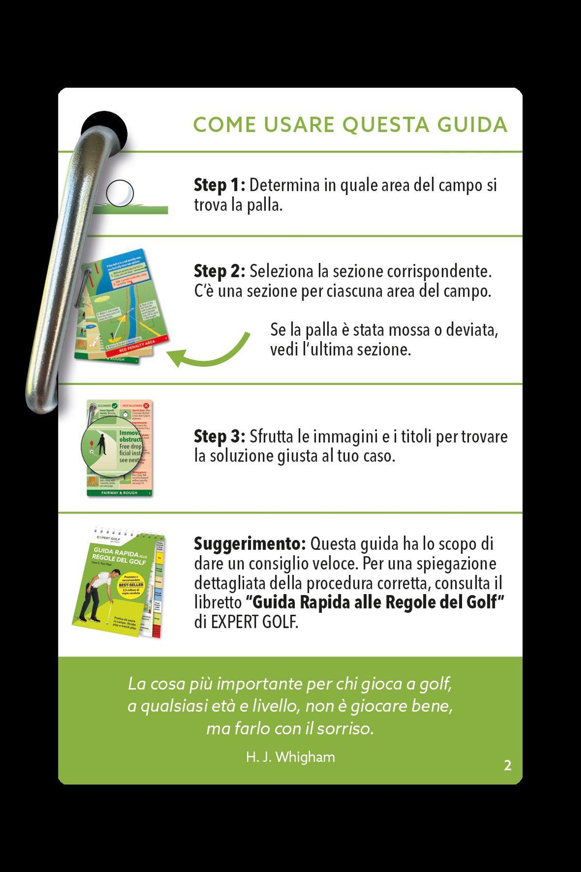 „Regole del Golf Espresse“. Ein Mann in Golfausrüstung zeigt auf einen Ball. Links oben ein Logo mit Haken., Buch