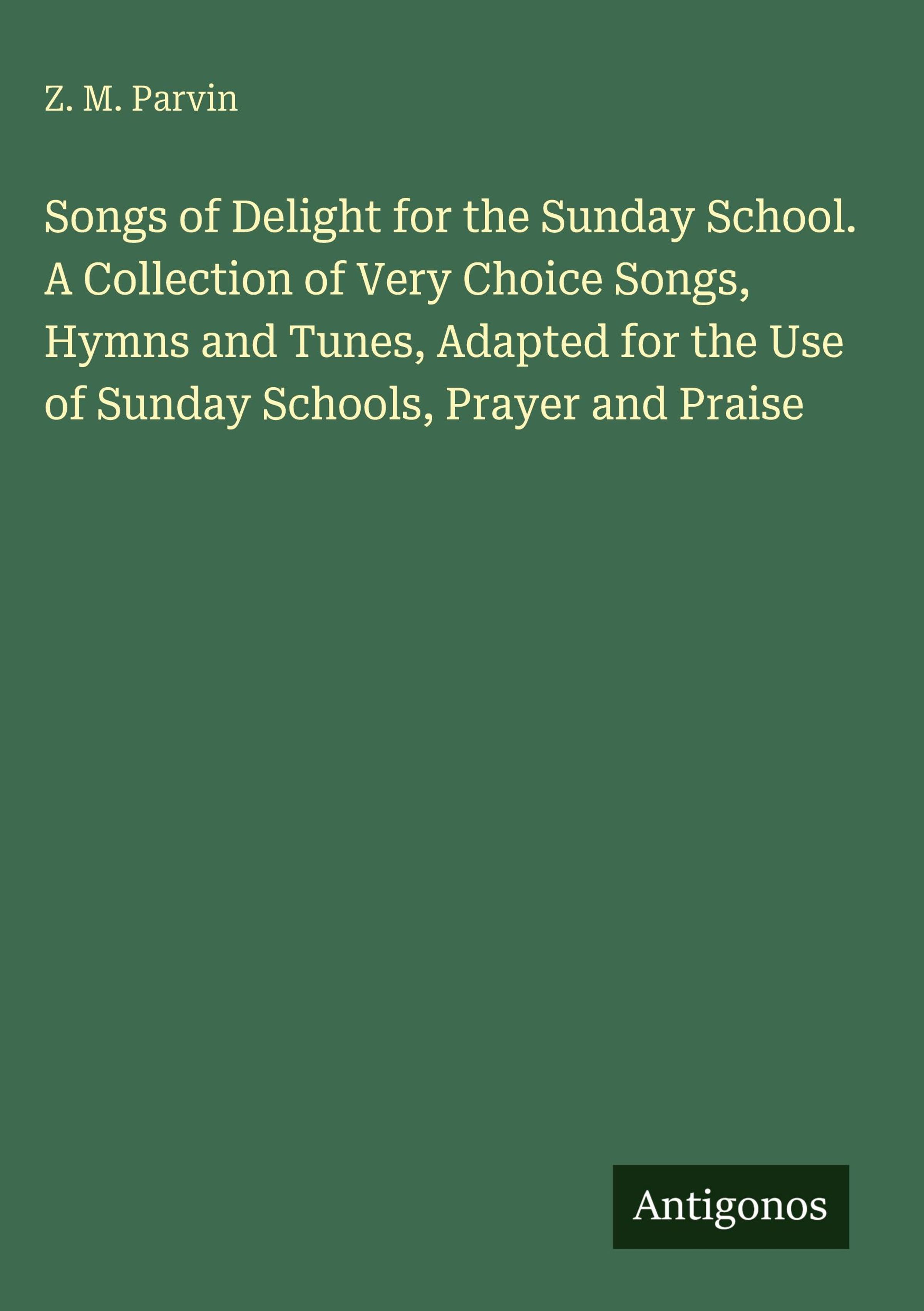Z. M. Parvin: Songs of Delight for the Sunday School. A Collection of Very Choice Songs, Hymns and Tunes,..., Gebunden