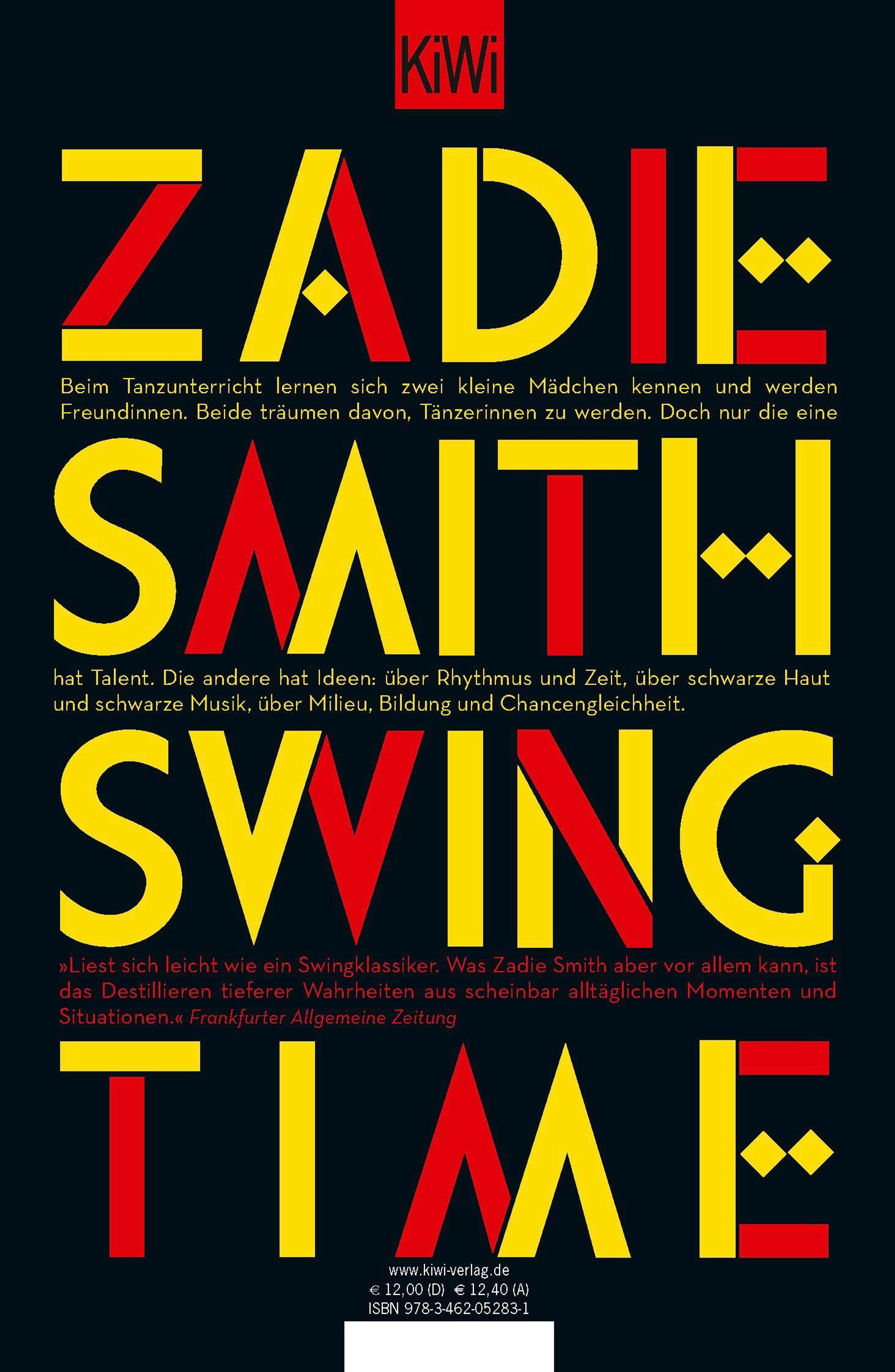 "Swing TimeZähne zeigen" und noch mehr Gewicht.« Literatur Spiegel. Beim Tanzunterricht lernen sich zwei kleine Mädchen kennen und werden Freundinnen. Beide träumen davon, Tänzerinnen zu werden. Doch nur die eine hat Talent. Die andere hat Ideen: über Rhythmus und Zeit, über schwarze Haut und schwarze Musik, über Stammeszugehörigkeit, Milieu, Bildung und Chancenungleichheit. Als sich die beiden Mädchen zum ersten Mal begegnen, fühlen sie sich sofort zueinander hingezogen: Die gleiche Leidenschaft fürs Tanzen und für Musicals verbindet sie, doch auch derselbe Londoner Vorort und die Hautfarbe. Ihre Wege trennen sich, als Tracey tatsächlich Tänzerin wird und erste Rollen in Musicals bekommt. Ihre Freundin wiederum jettet als Assistentin der berühmten Sängerin Aimee um die Welt. Dieser grandiose Roman von Zadie Smith erzählt vom Siegen und Scheitern, vom Beginnen und Enden in einer komplexen globalen Welt.Biografie (Zadie Smith)