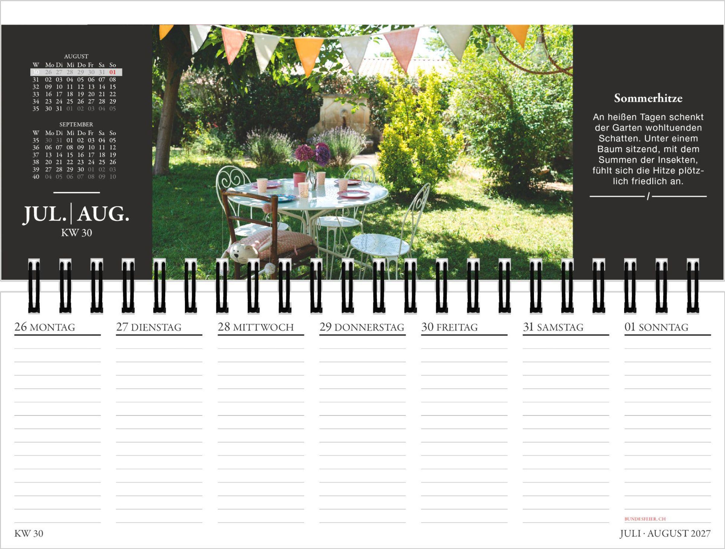 „Zauberhafte Gärten 2027" ist mehr als ein Kalender -- er ist eine wöchentliche Auszeit im Grünen und ein stilvoller Begleiter für alle, die Gartenatmosphäre und Naturbilder lieben.