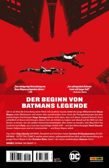 DER BEGINN VON BATMANS LEGENDE Seit er als Kind die Ermordung seiner Eltern mit ansehen musste, leidet der junge Milliardenerbe Bruce Wayne unter Albträumen und einem alles verzehrenden Zorn. Auch die Therapiesitzungen bei dem zwielichtigen Psychologen Hugo Strange führen nicht dazu, dass sich dieser Zustand bessert. Doch schließlich ist Bruce entschlossen, diesen Zorn als Antrieb zu nutzen und überall auf der Welt von den Besten zu lernen, um der größte Verbrechensbekämpfer aller Zeiten zu werden. Sein Weg führt ihn zunächst nach Paris, wo er auf eine berüchtigte Diebin trifft - und den Menschenjäger Henri Ducard. Dessen Zielpersonen sind ein Serienmörder ... und Bruce Wayne selbst! Top-Autor Chip Zdarsky (BATMAN, Daredevil) und Zeichner-Genie Carmine Di Giandomenico (BATMAN - DETECTIVE COMICS, FLASH) werfen einen neuen, außergewöhnlichen Blick auf die Verwandlung des jungen Bruce Wayne in den Dunklen Ritter, der zur Legende wurde. Band 1 der neuen zweibändigen Batman-Serie!
