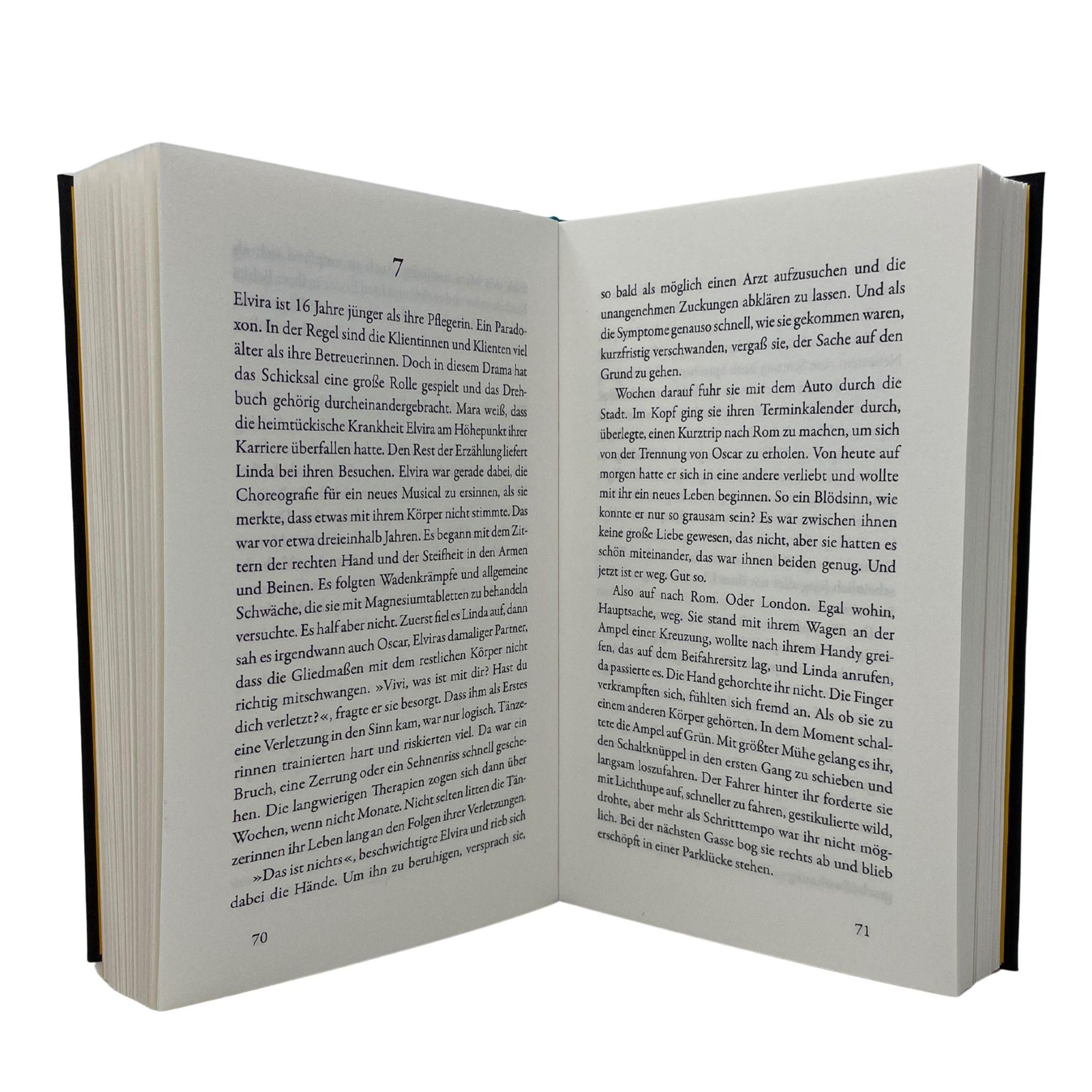 Mara, eine slowakische Pflegerin, tritt eine neue Stelle in Österreich an. Ihre Klientin Elvira war als Tänzerin und Choreografin auf dem Zenit ihrer Karriere, als sie die Diagnose der tödlichen Nervenkrankheit ALS erhielt. Nach drei Jahren ist ihr Körper vollständig gelähmt, der Geist aber ist wach. Trotz unterschiedlicher Herkunft und Lebenswelten entsteht zwischen den beiden Frauen und Elviras Vater, der ab und zu ins Haus kommt und bei der Pflege seiner Tochter hilft, eine unerwartete familiäre Harmonie. Der Roman, eine Berg- und Talfahrt der Emotionen, zeigt, wie aus einem aussichtslosen Ende ein Neuanfang entstehen kann.