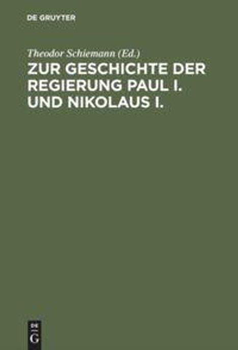 Zur Geschichte der Regierung Paul I. und Nikolaus I.