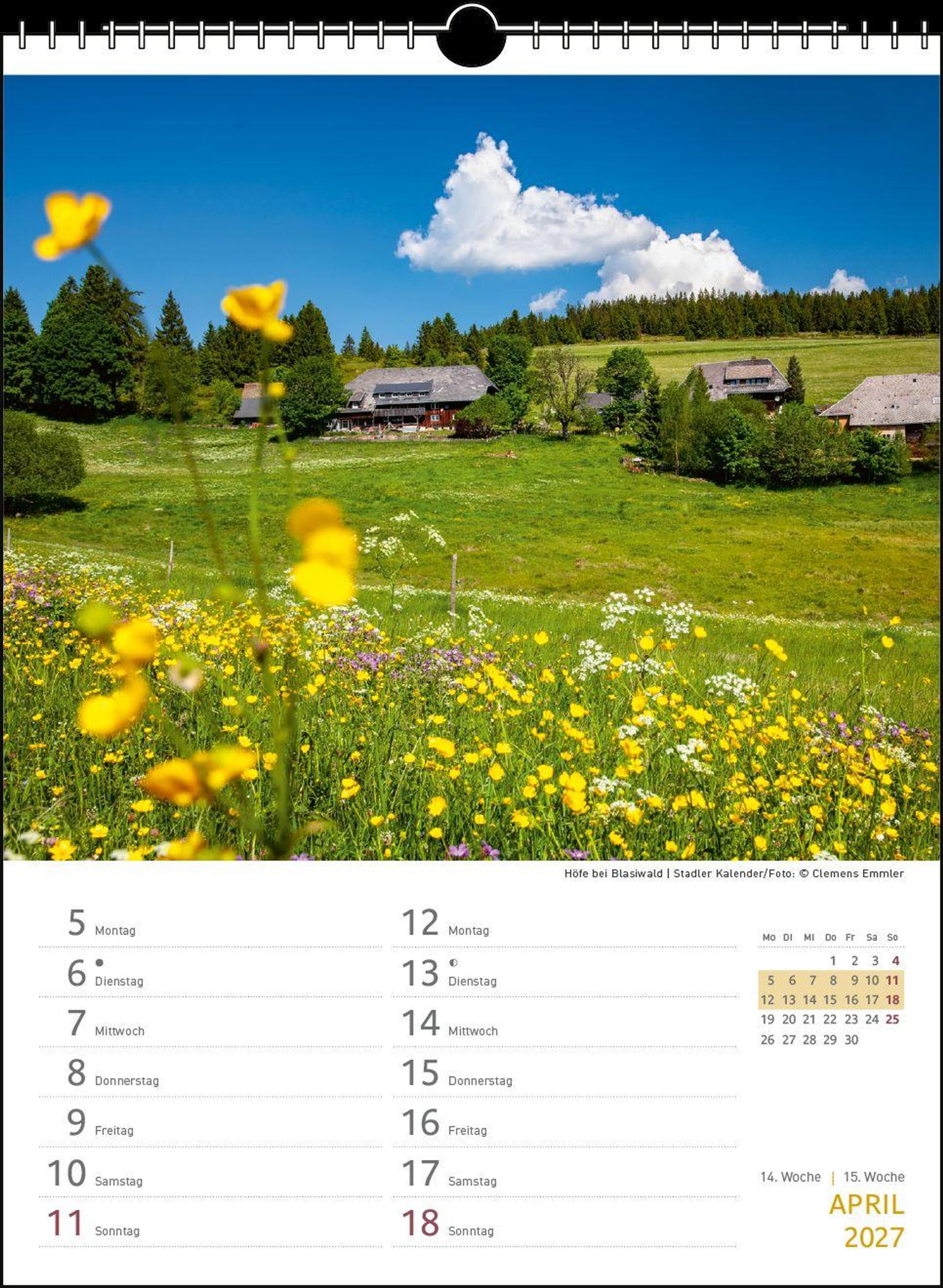 Die Region Schwarzwald gilt als eine der beliebtesten Ferienregionen Deutschlands. Die vielfältige Landschaft sowie die gelebte Tradition bieten abwechslungsreiche Erlebnisse. Die Kalenderbilder nehmen sie mit auf eine Reise in diese malerische Region. Das Kalendarium des Zwei-Wochenplaners bietet Platz für Notizen und Termine.