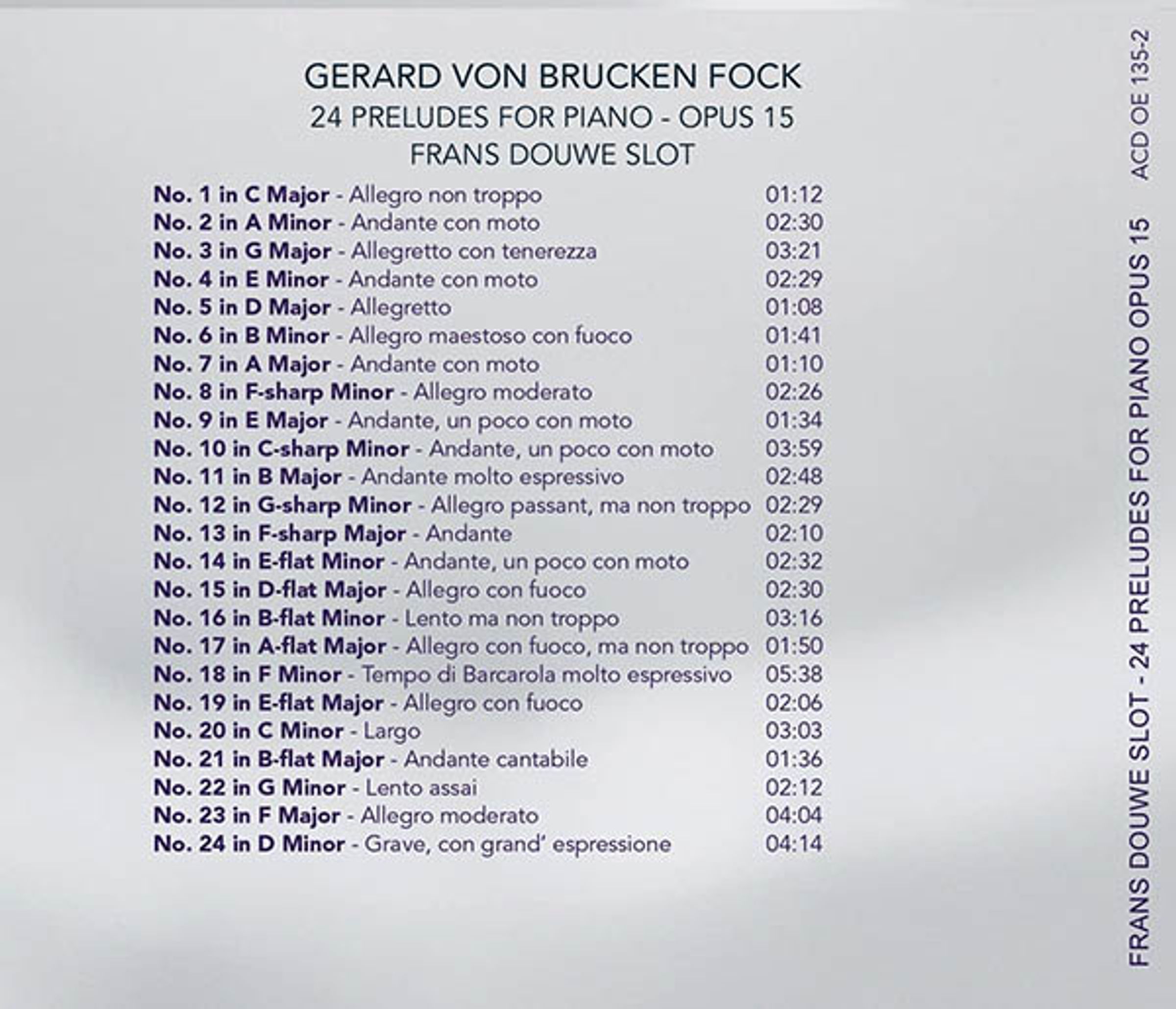 Julius Röntgen bat seinen Freund Edvard Grieg, ein Vorwort für die 24 Präludien von Von Brucken Fock zu schreiben. »Eine Einleitung von mir?«, antwortete Grieg, »das hat seine Musik doch nicht nötig«. Deshalb entschuldige ich mich hiermit für diese Einführung in das repräsentativste Werk von Gerard von Brucken Fock.