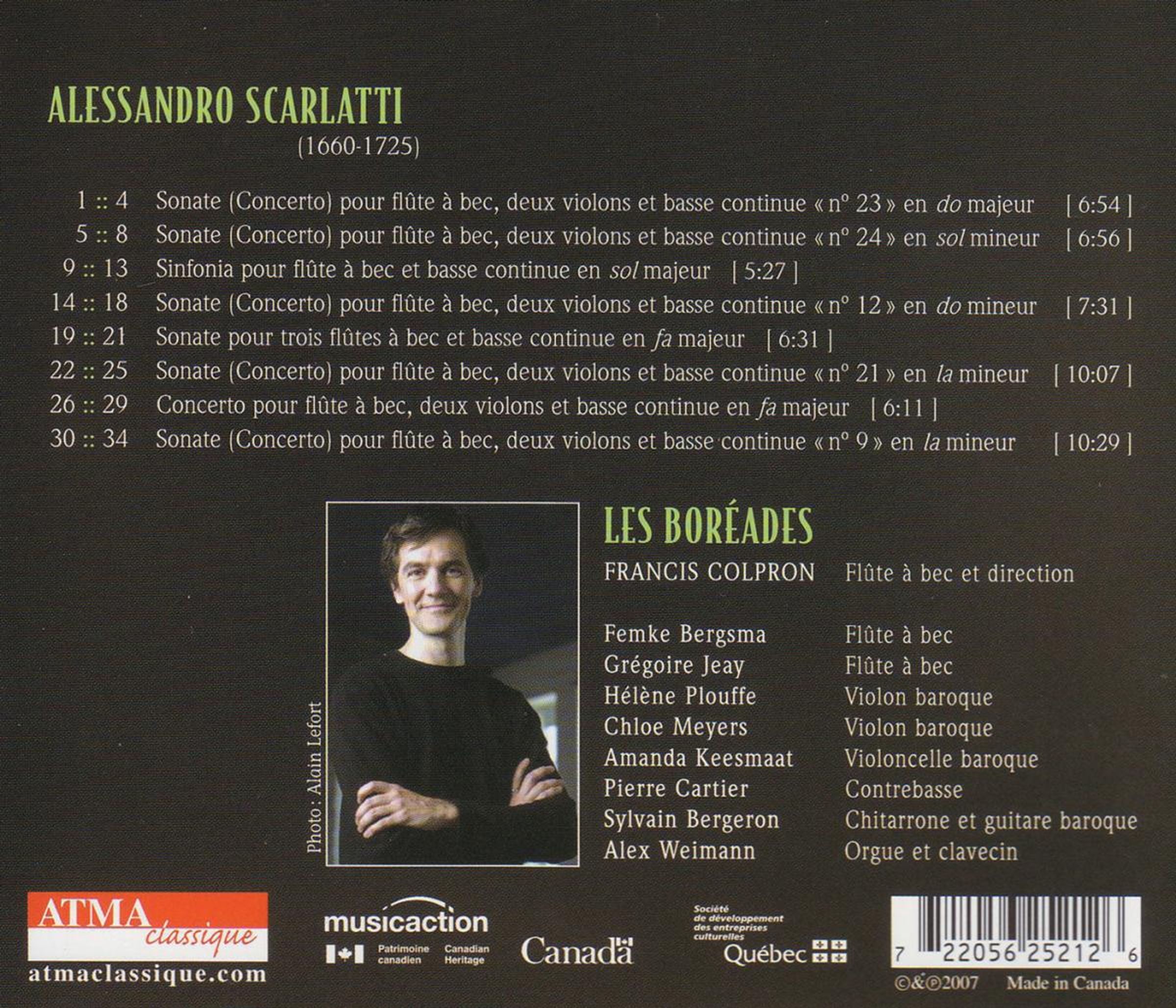 Mit diesem neuen Werk präsentieren Les Boréades Sonaten und Konzerte für Blockflöte, Violinen und Basso continuo von Alessandro Scarlatti. Diese Werke, die sowohl den Geist als auch die Sinne ansprechen, wurden im Todesjahr des italienischen Komponisten 1725 komponiert und sollen für den deutschen Flötisten Joachim Quantz während seines Besuchs in Neapel geschrieben worden sein.