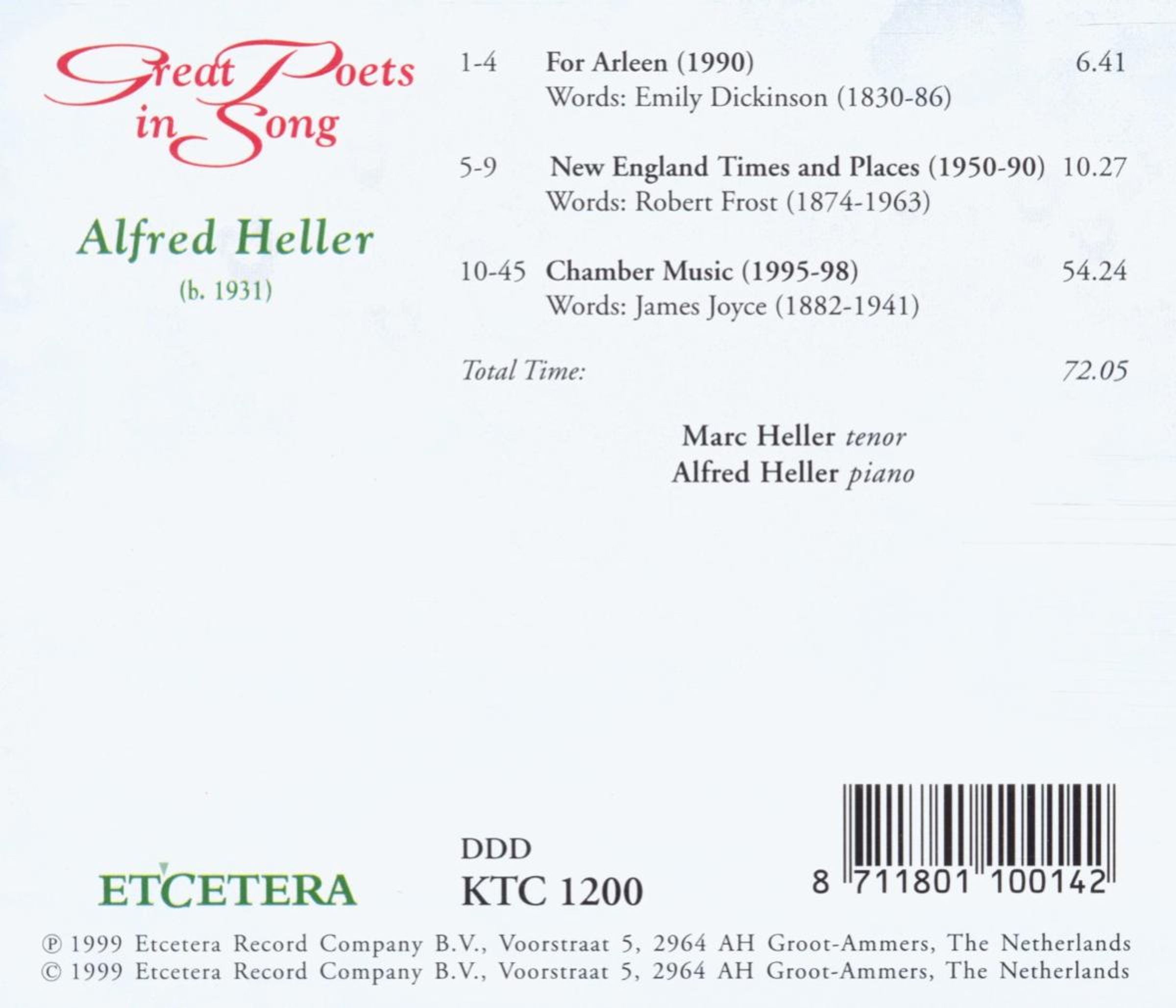 Alfred Heller: Great Poets in Song auf CD