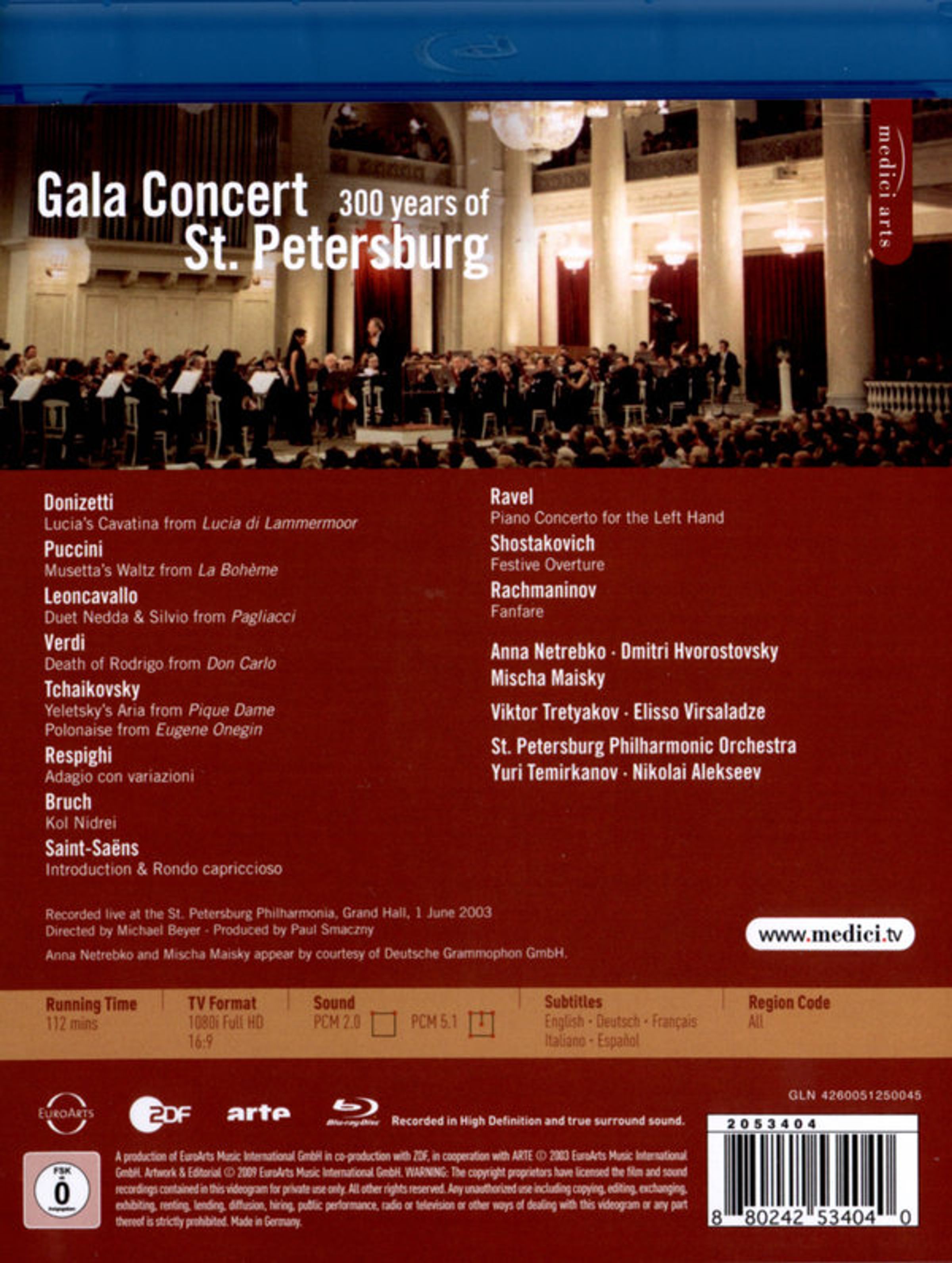 - Anna Netrebko, Dmitri Hvorostovsky, Mischa Maisky, Eliso Virsaladze, St. Petersburg Philharmonic Orchestra, Yuri Temirkanov, Nikolai Alekseev