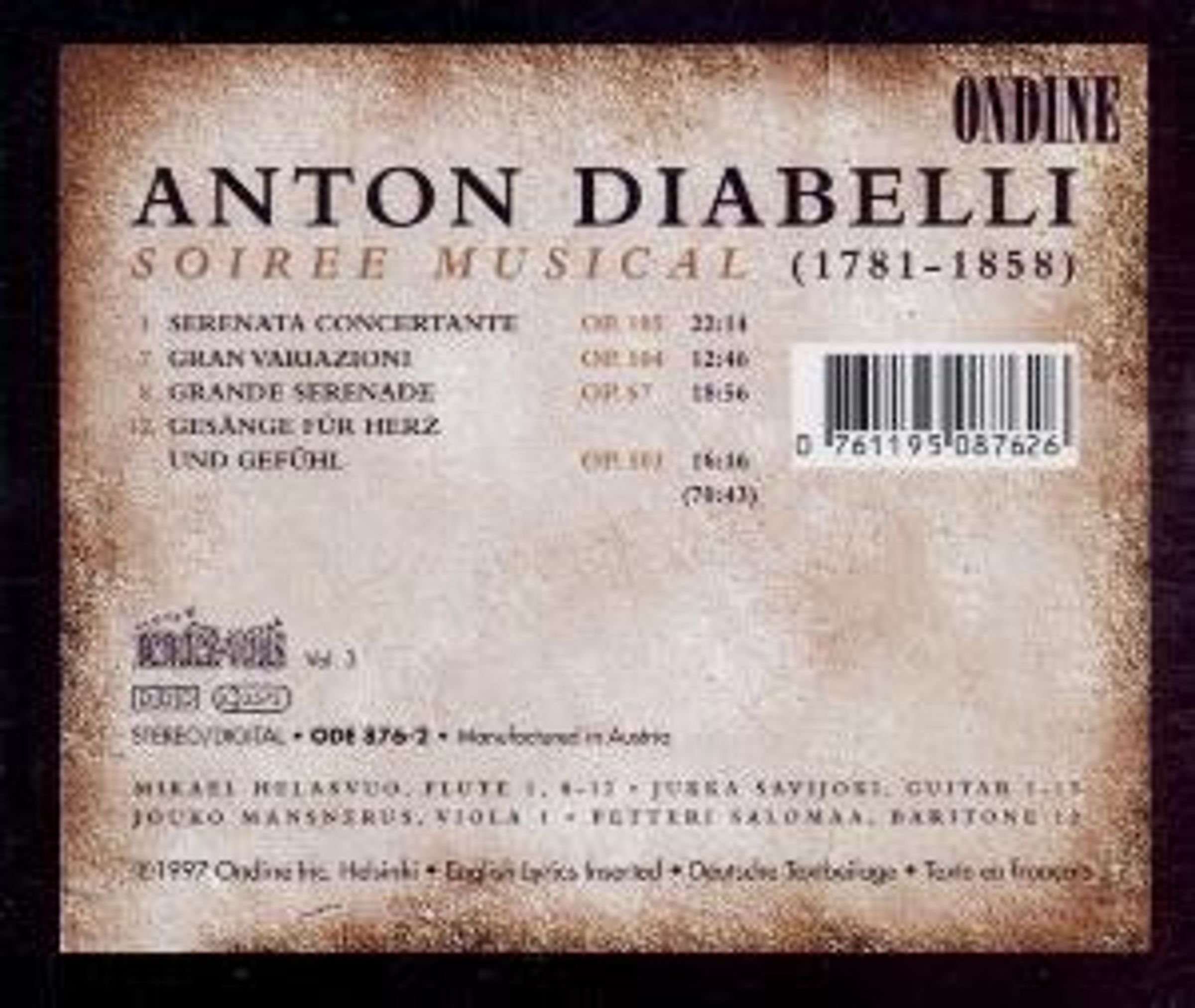 Anton DiabelliKammermusik für Flöte & GitarreSuper Audio CDVorheriger Preis EUR 21,99, reduziert um 0%Aktueller Preis: EUR 19,99