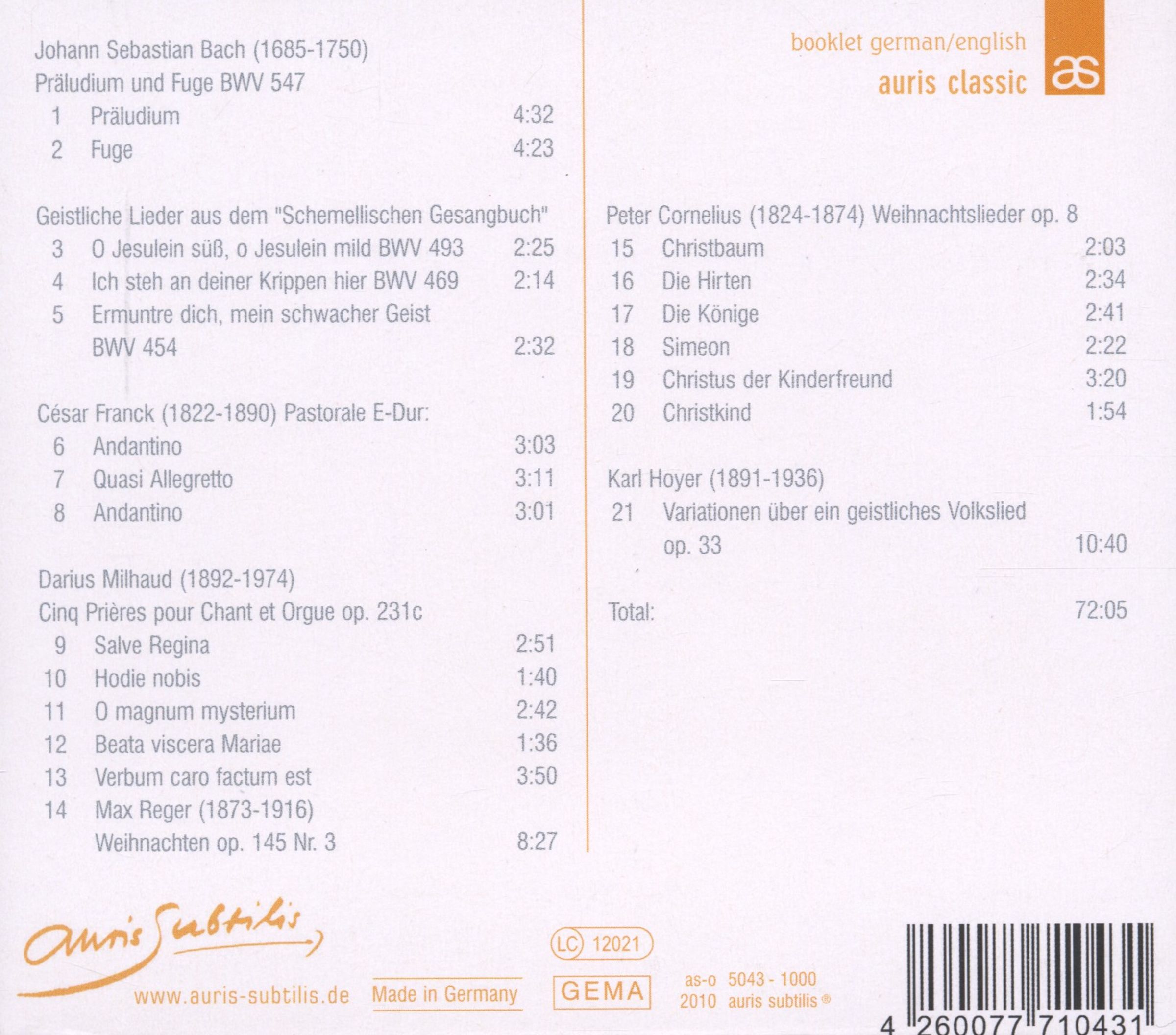 Bach: Präludium & Fuge BWV 547; Geistliche Lieder aus dem Schemellischen Gesangbuch (O Jesulein süß, o Jesulein mild BWV 493; Ich steh an deiner Krippen hier BWV 469; Ermuntre dich, mein schwacher Geist BWV 454)