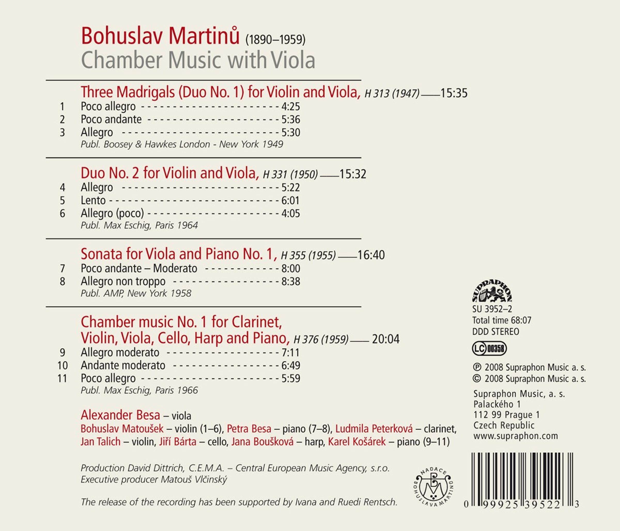 Bohuslav Martinu: Kammermusik mit Viola auf CD