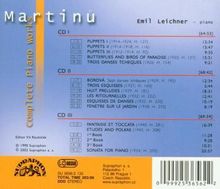 For his independence from the big names of the piano literature and his masterful instrumental syntax, the piano works of Martinu are all the more beloved at home and abroad, and for the needs of interested parties both active and passive there is an undisputed value in Supraphon presenting a complete digital recording of his works for this instrument. This recording is to the credit of the pianist Emil Leichner, whose relationship to Martinu's works has become institutionalized through his lengthy activities with the Bohuslav Martinu Piano Quartet. He is the first pianist to fulfill the task of learning the complete solo works of this Czech classic composer of the twentieth century.