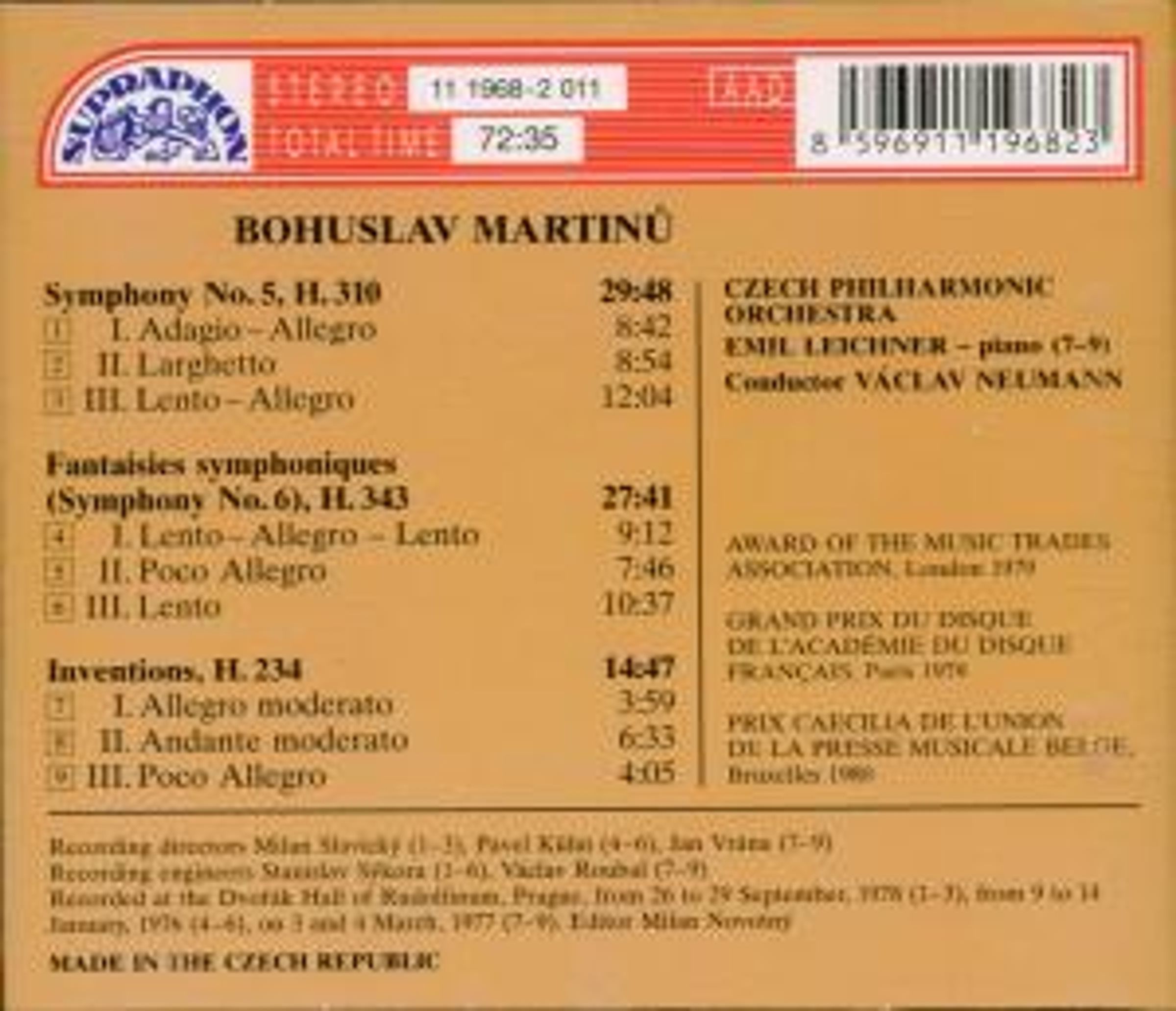 - Czech Philharmonic Orchestra, Vaclav Neumann