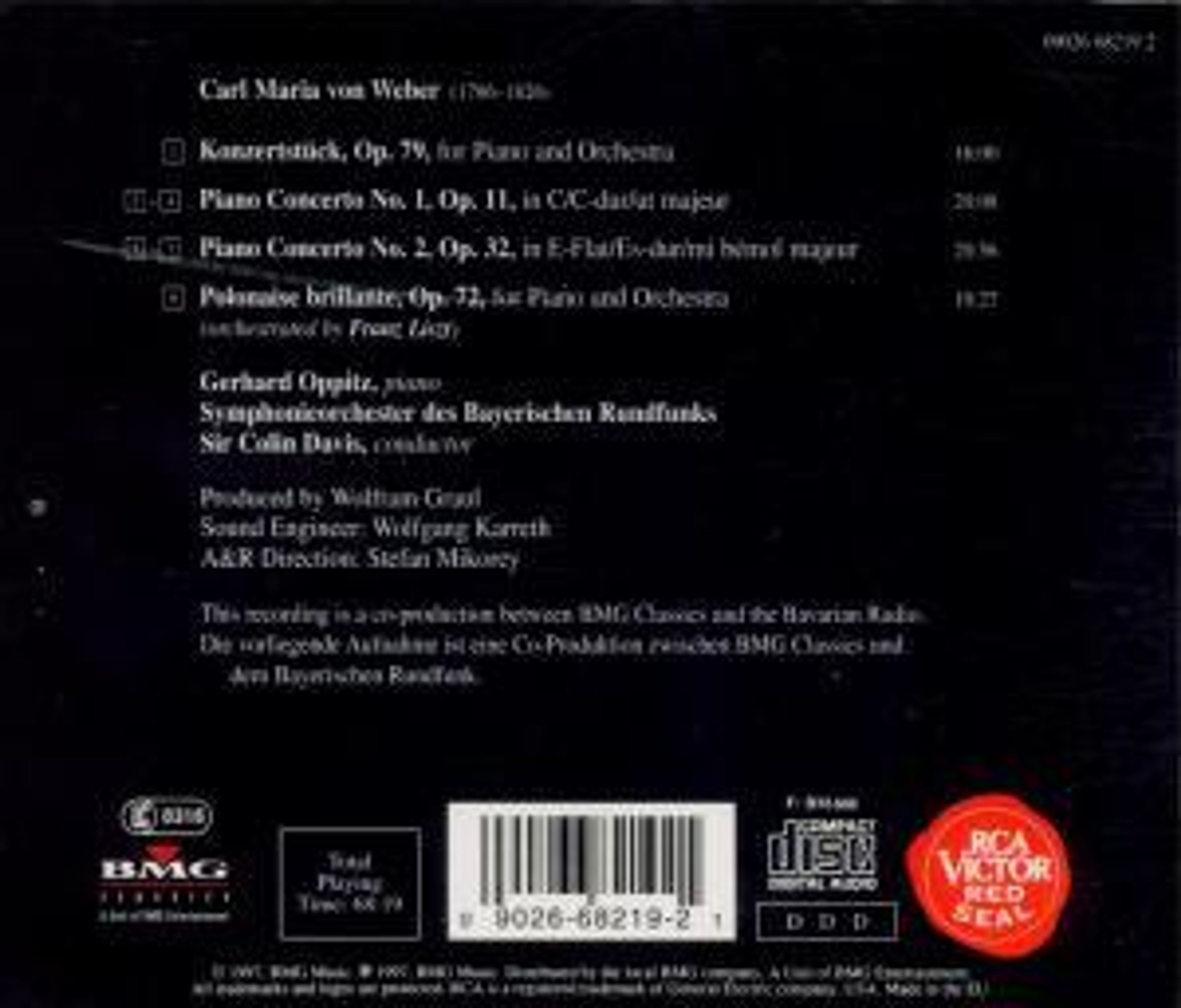 J. Hagestedt in stereoplay 8/97: "Gerhard Oppitz ist zum Weber-Interpreten prädestiniert. So mühelos, wie generell sein Musizieren wirkt, trifft er den Ton des Komponisten im Dreieck von opernhafter Theatralik, frühromantischer Volkstümlichkeit und bürgerlicher Unterhaltung. Die Tempi sind sicher gewählt, hell leuchtet der Diskant, und ein üppiges dichtes Legato verströmt aus der Fülle Ton um Ton."Disk 1 von 1 (CD)