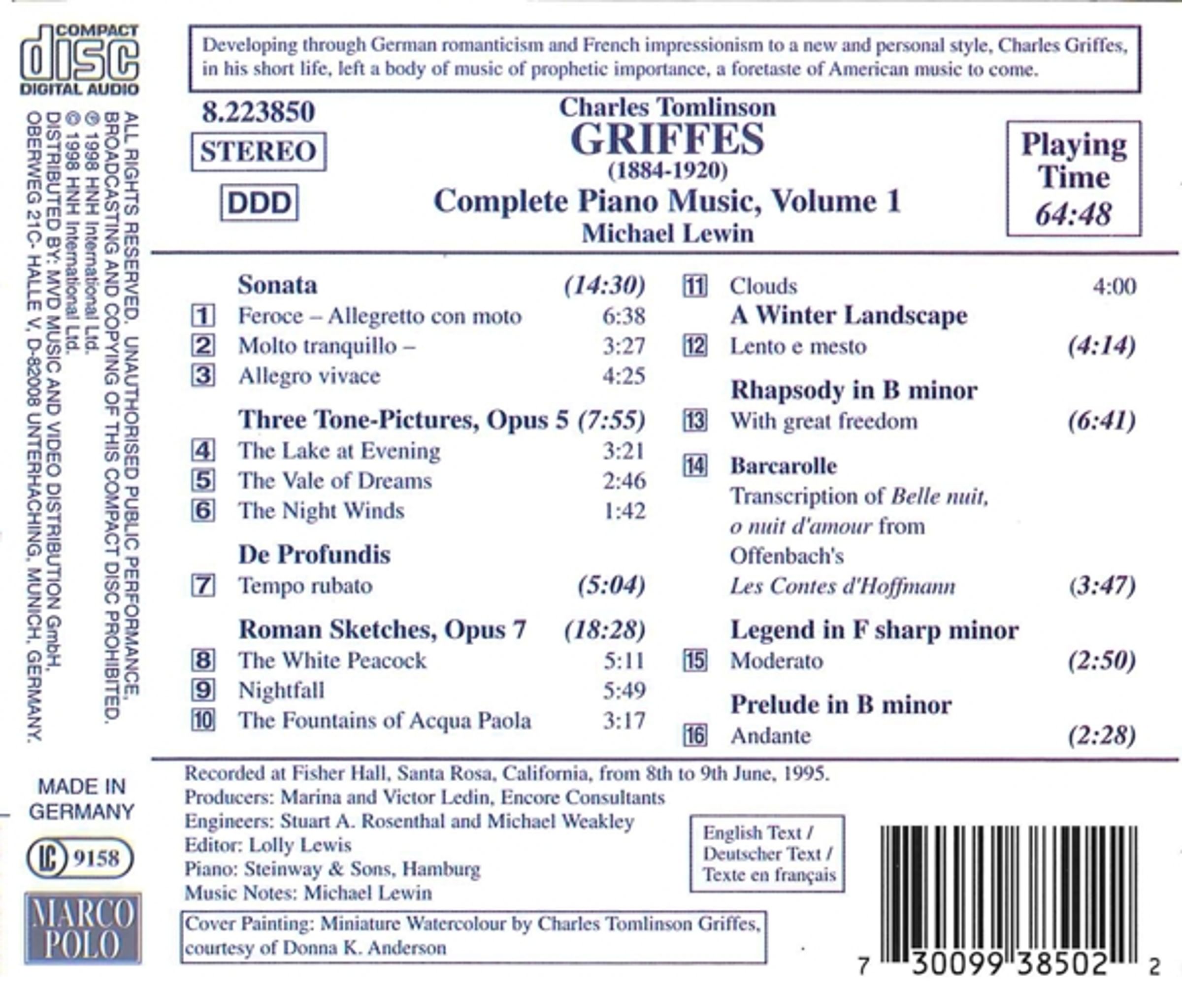 Charles Tomlinson Griffes: Klavierwerke Vol.1 auf CD