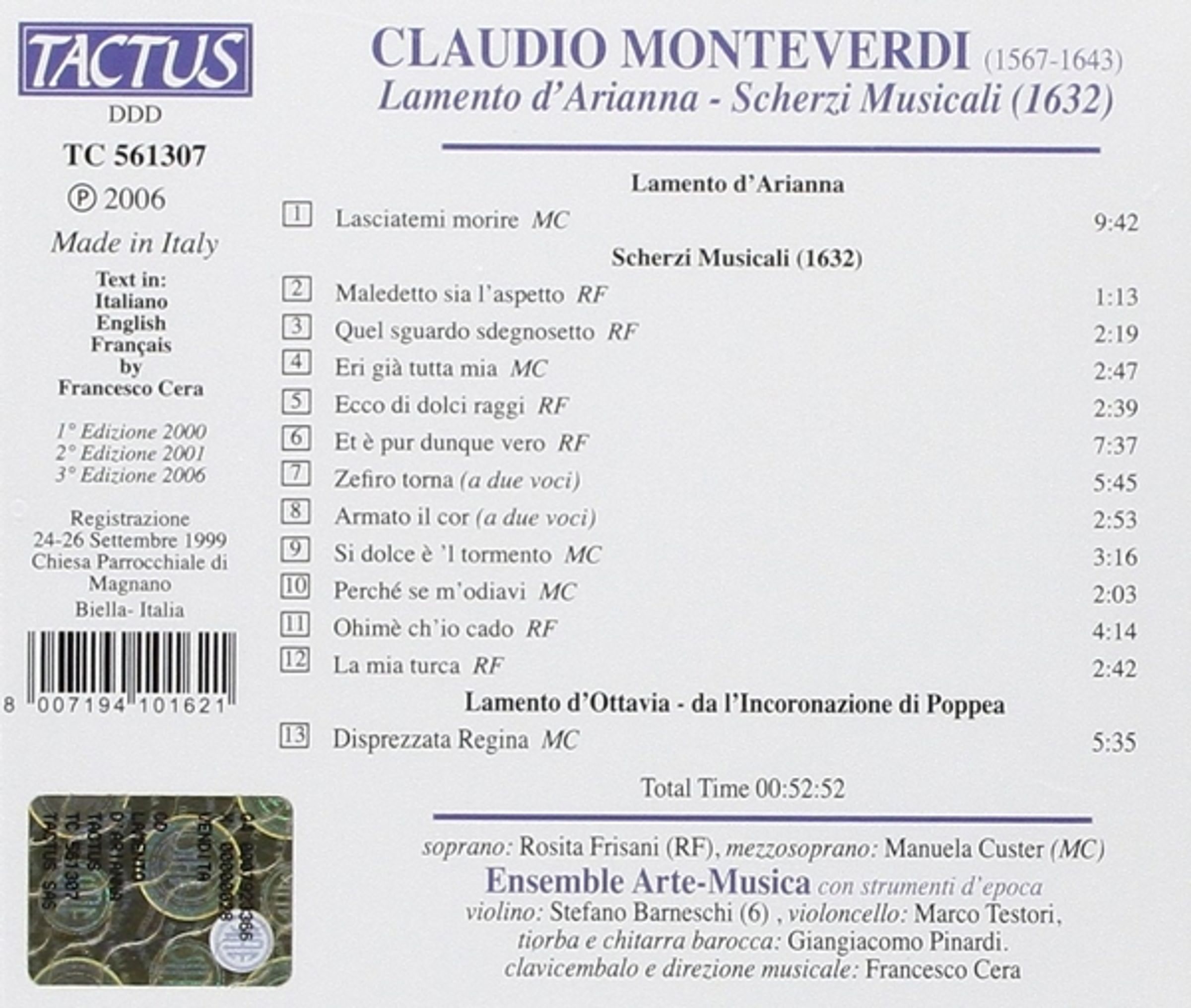 1. 1 Madrigali Libro 6 B (Madrigalbuch 6 B): Lamento d'Arianna (Lasciatemi morire)