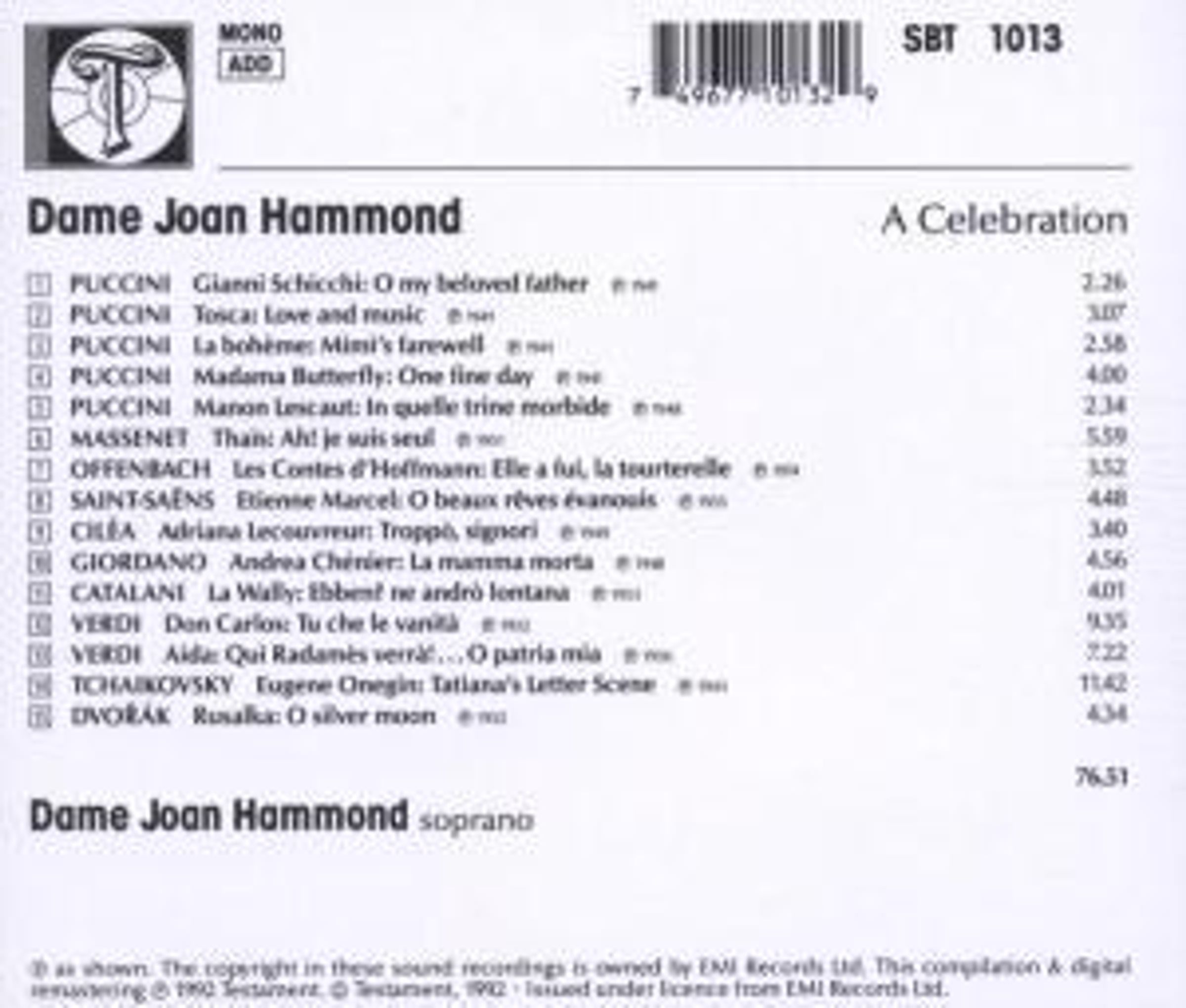 Dame Joan Hammond singt Arien, CD