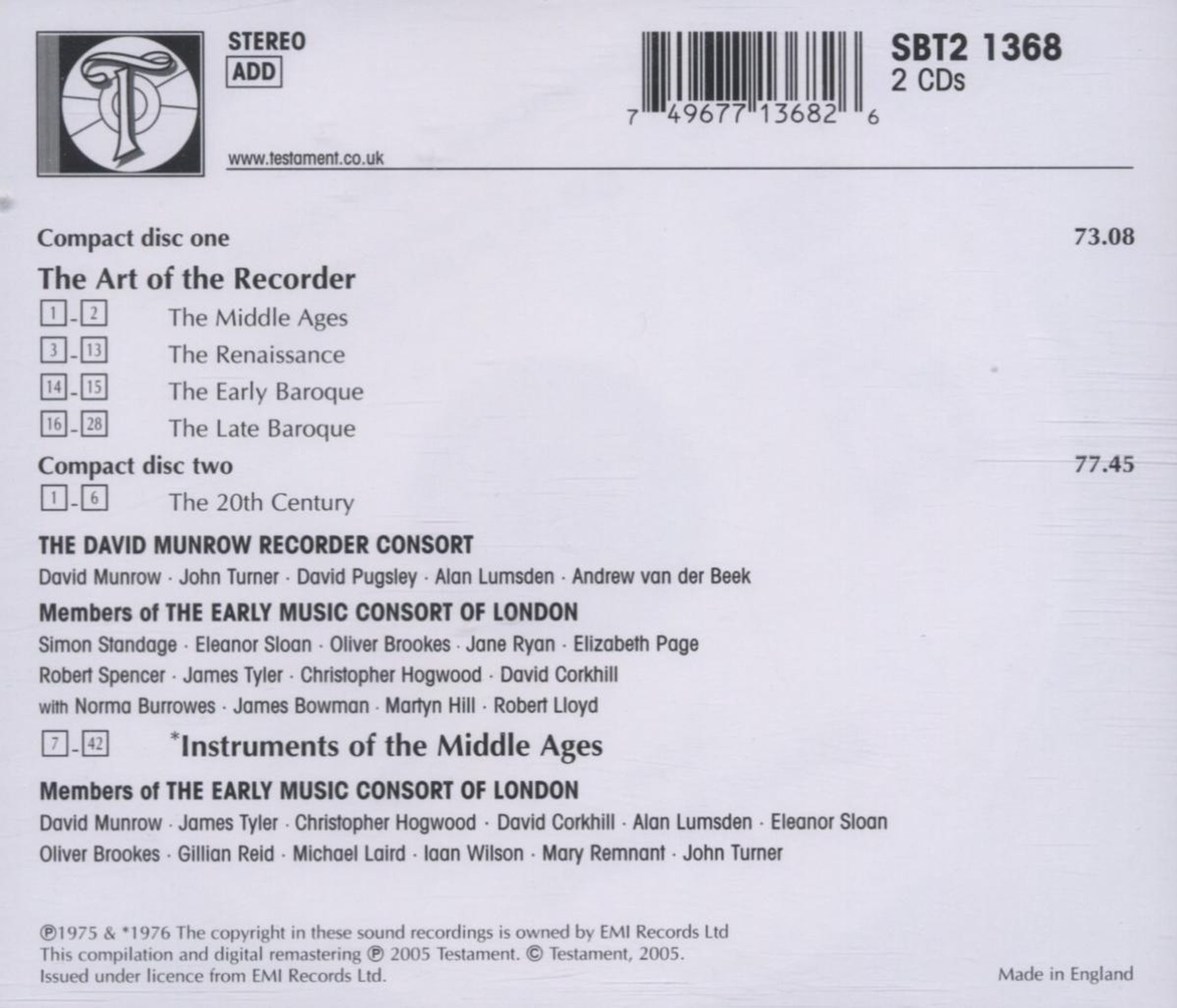 Die Bedeutung von David Munrow (1942-1976) für die praktische Erschließung und Popularisierung der Alten Musik in England, die zu einer bis heute andauernden Vorrangstellung britischer Musiker auf diesem Gebiet geführt hat, ist wohl kaum zu unterschätzen. Sein früher Tod bedeutete einen herben Verlust für das musikalische England. Dass seine künstlerische Leistung, jenseits aller neuen Erkenntnisse, aber auch aller modischen Sackgassen in der Aufführungspraxis immer noch von Bedeutung ist, davon können wir uns mittels dieser Doppel-CD bei Testament überzeugen lassen.