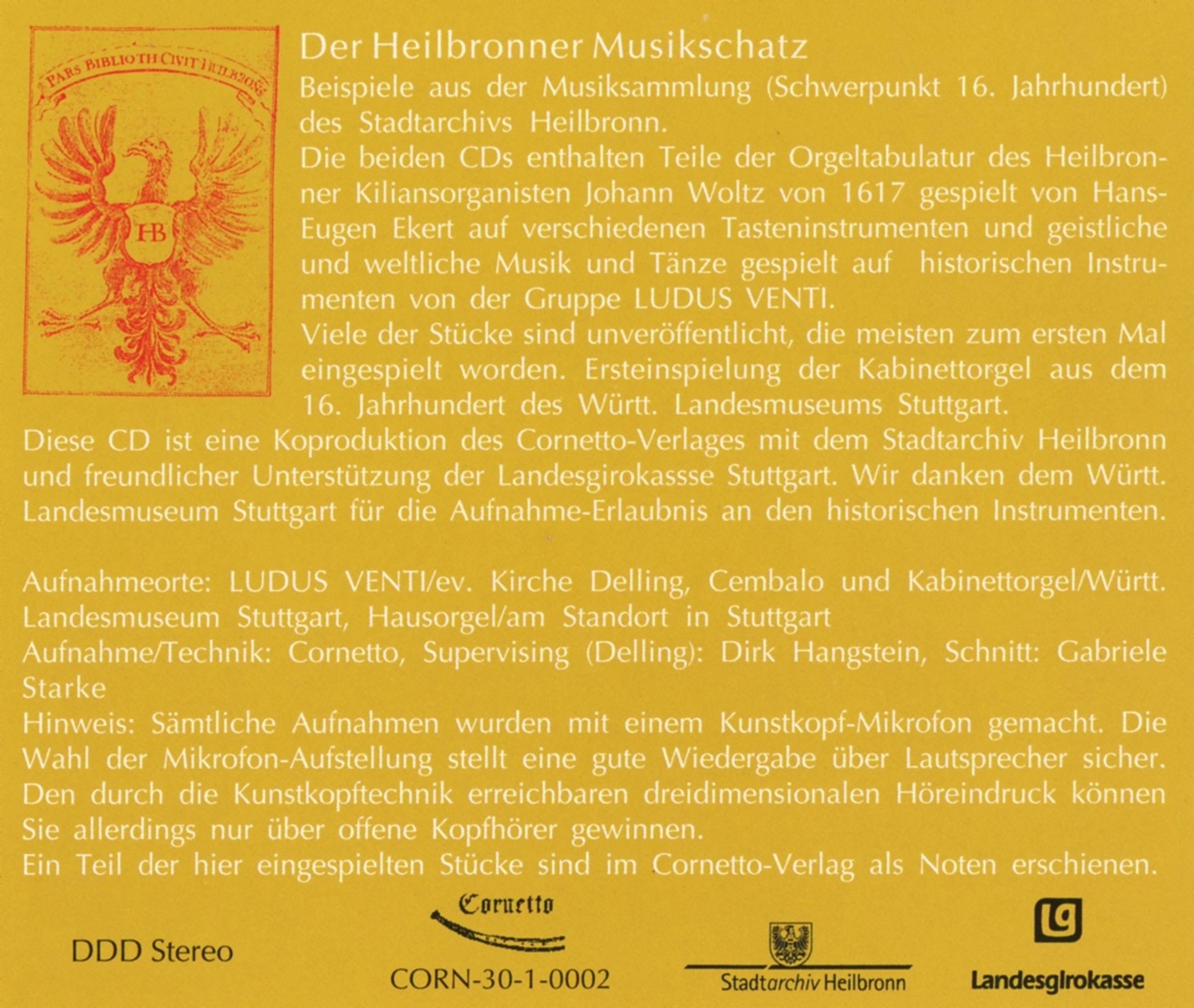 - Hans-Eugen Ekert (Orgel, Cembalo, Kabinettorgel), Ludus Venti