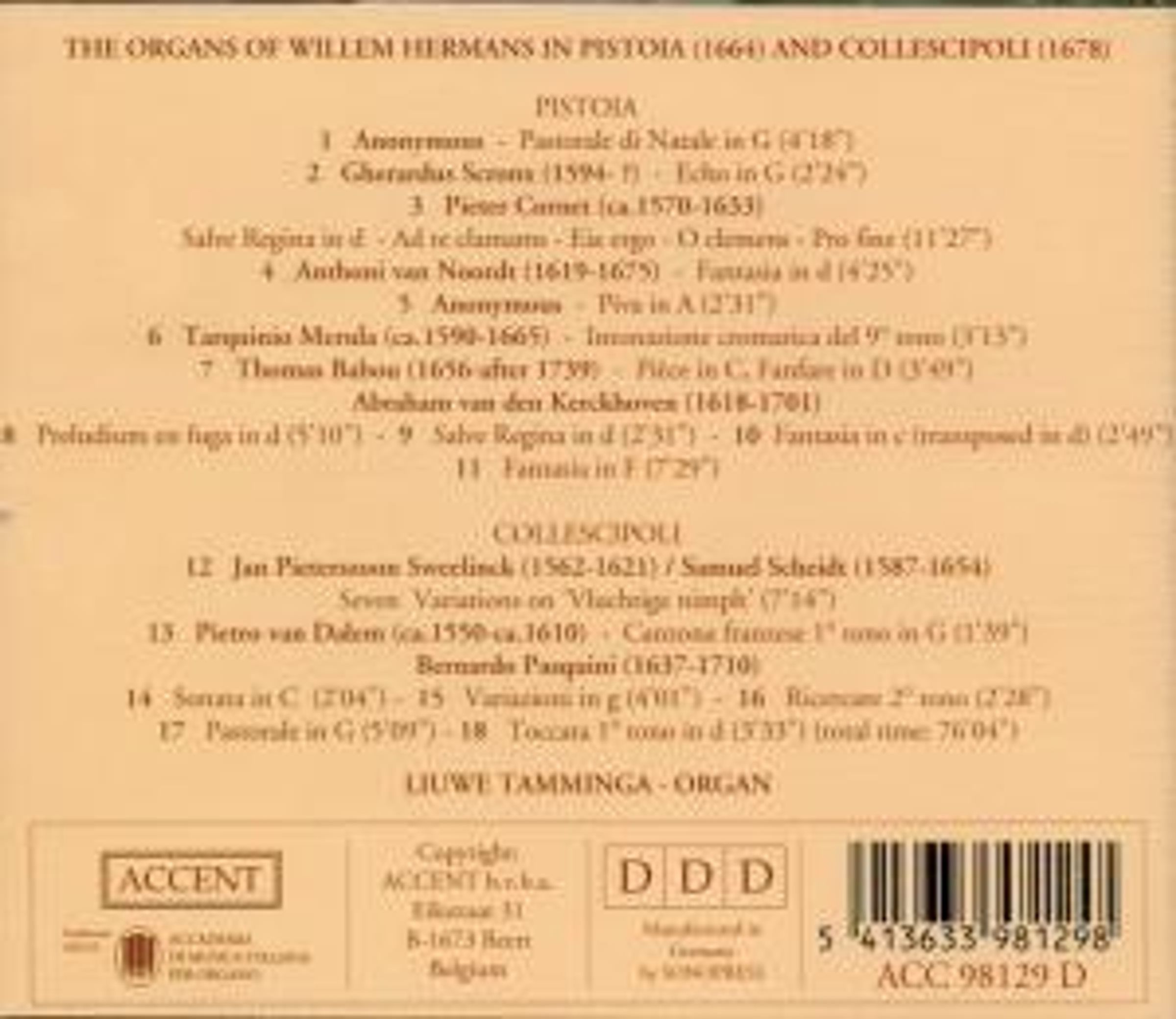 Die Willem Hermans Orgeln in Pistoia & Collescipoli, CD