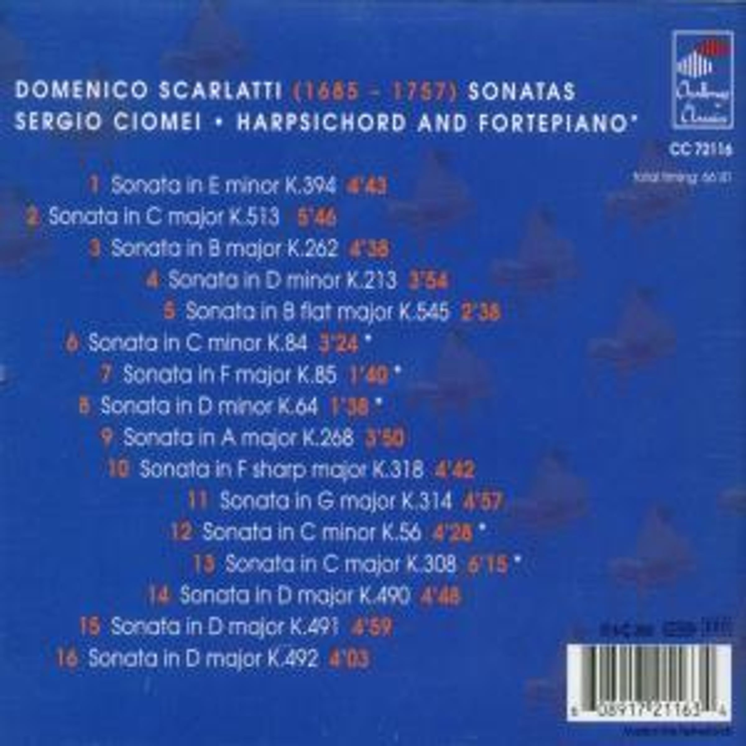 Sonaten K. 56, 64, 84, 85, 213, 262, 268, 308, 314, 318, 394, 490, 491, 492, 513, 545