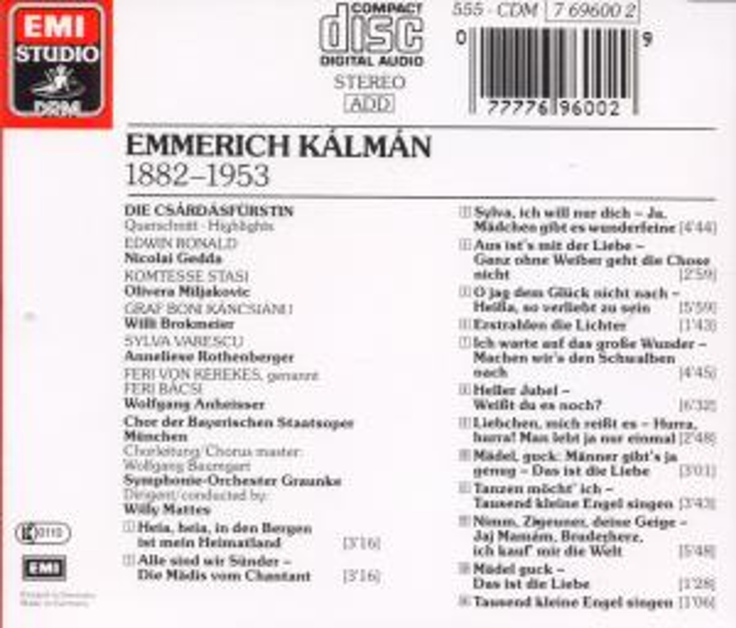 Emmerich Kalman: Die Csardasfürstin (Ausz.) auf CD