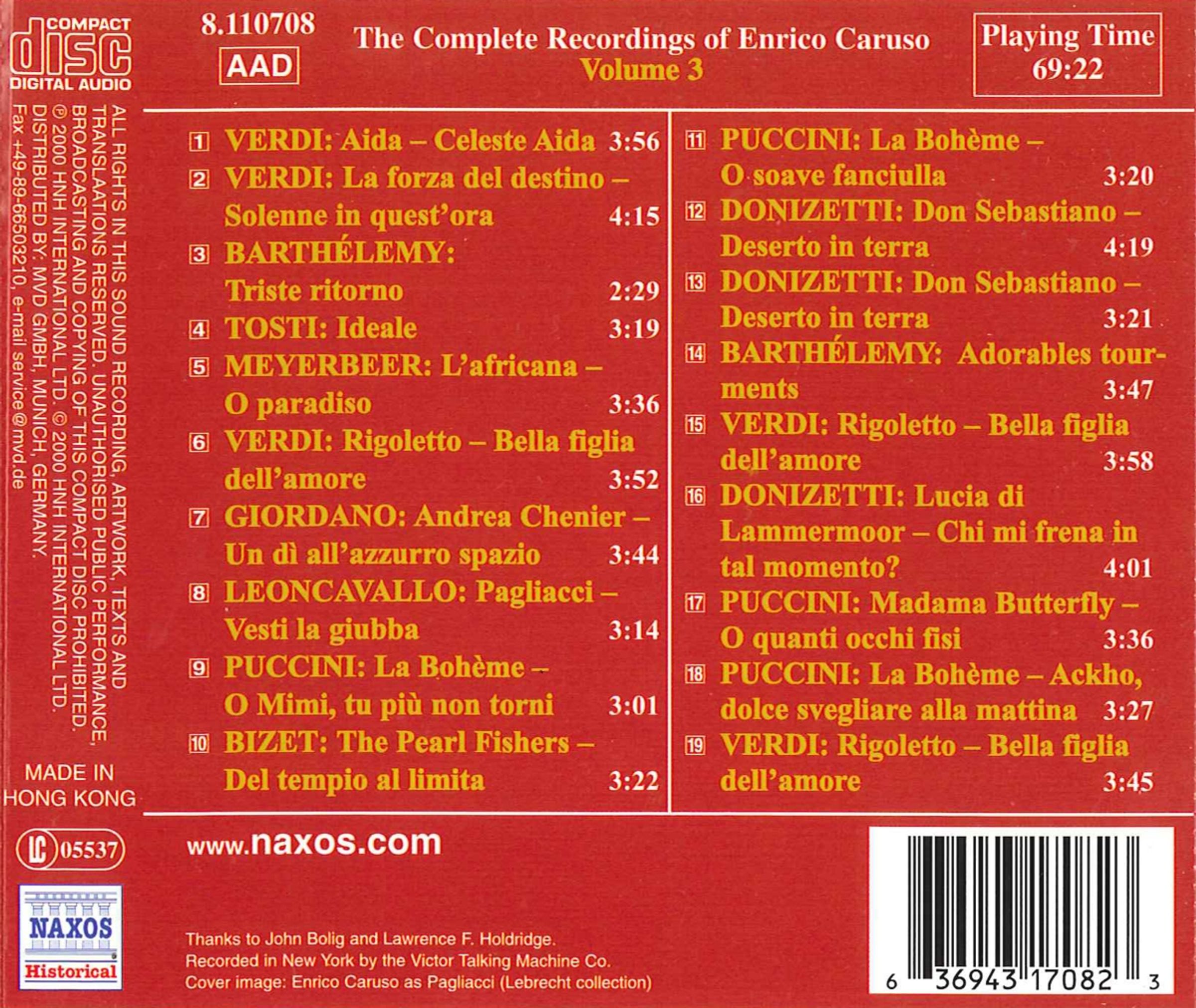 1 Enrico Caruso: Aida: Aida: Celeste Aida