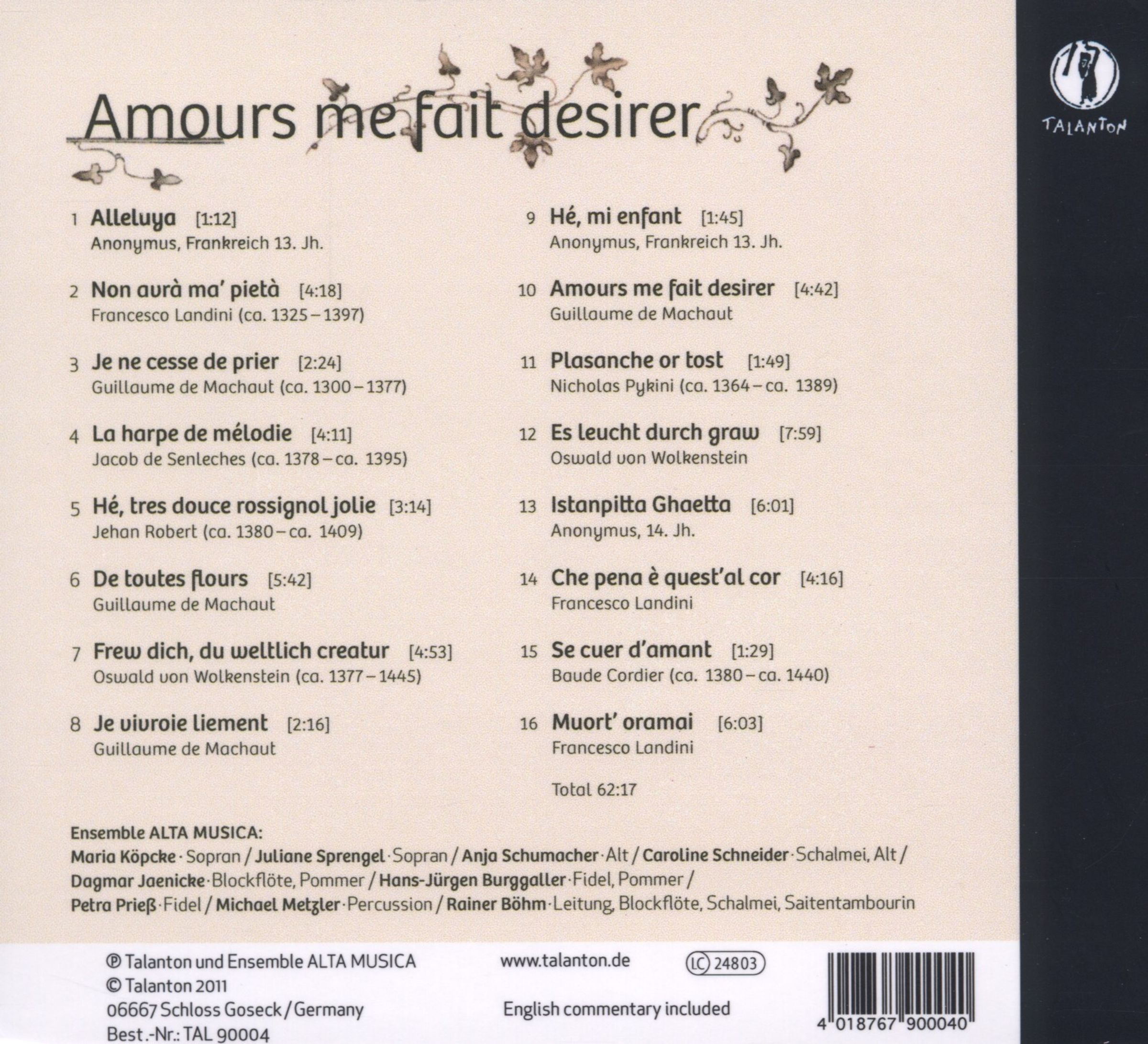Ensemble Alta Musica - Amours me fait desirer, CD, CD