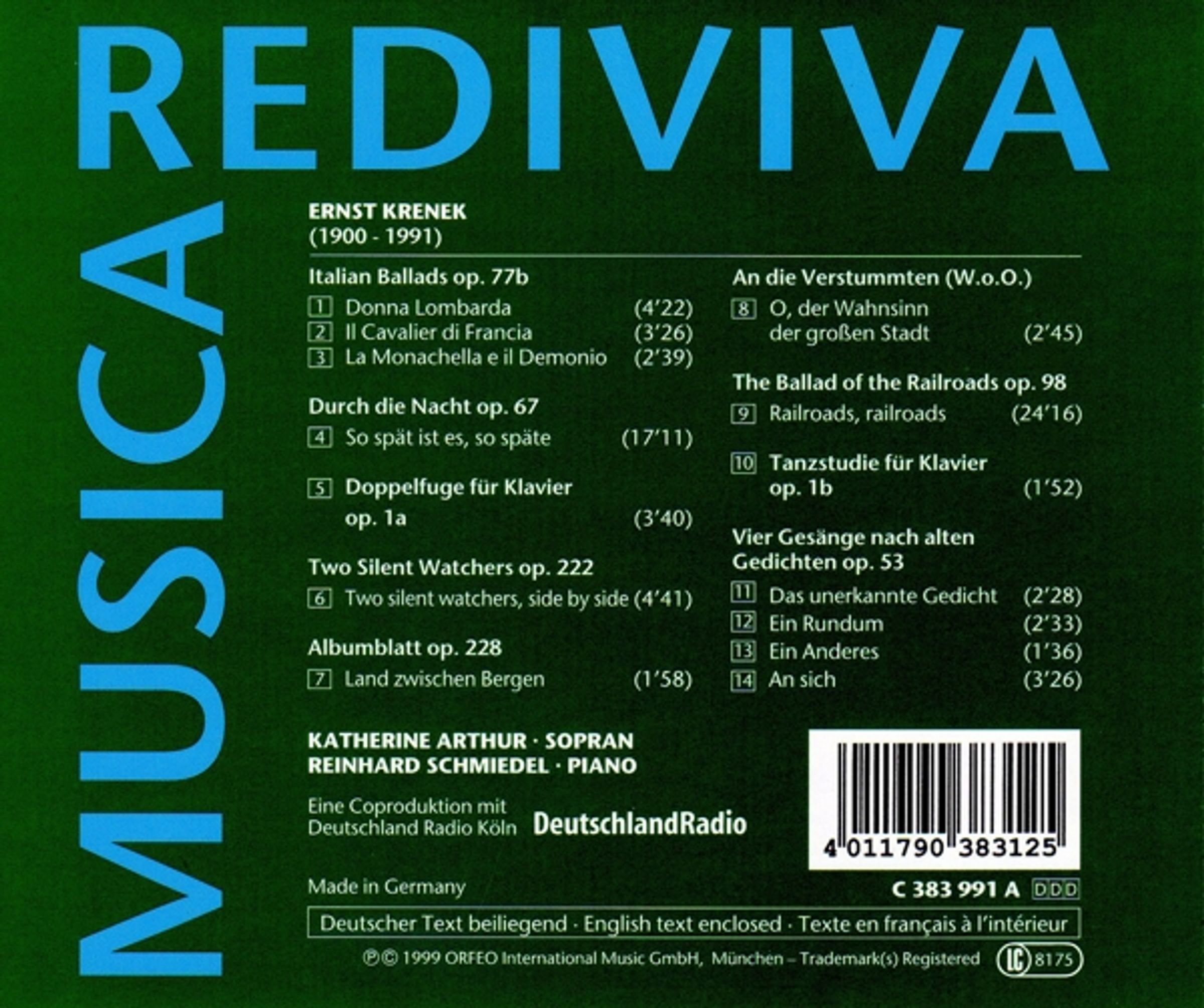Der Artikel Ernst Krenek (1900-1991): Lieder wurde in den Warenkorb gelegt.