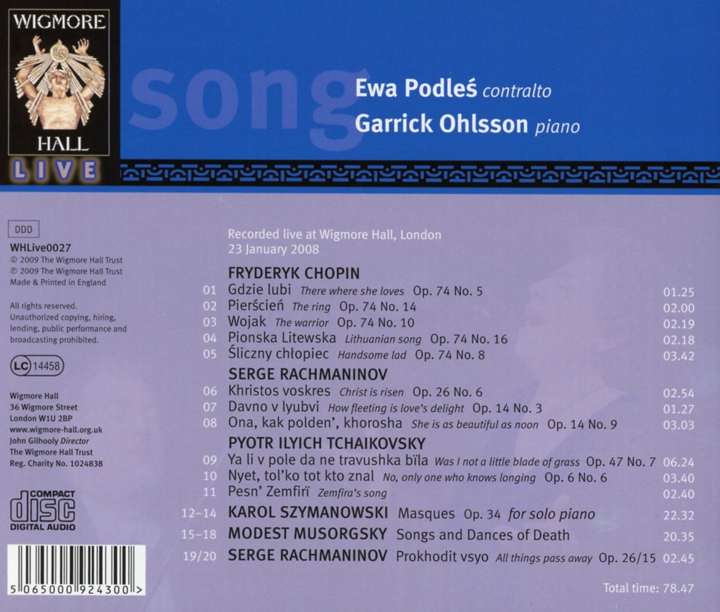 Lieder von Chopin, Rachmaninoff, Tschaikowsky, Szymanowsky, Mussorgsky